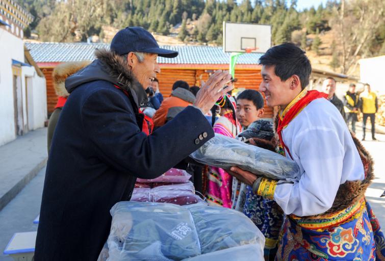 在木里县,“五老”给孩子们送上暖冬物资 邱天 摄