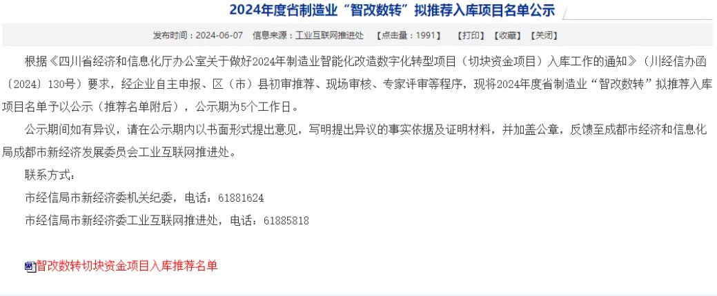 2024年度省制造业“智改数转”拟推荐入库项目名单公示