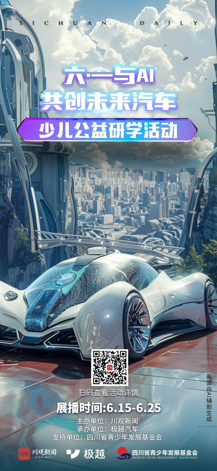 在川观新闻首页,点击右下角“活动”,找到“六·一与AI共创未来汽车”少儿公益研学活动,点击即可参与;