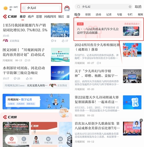 在川观新闻首页顶部搜索框输入“少儿AI”,点击活动链接即可参与。