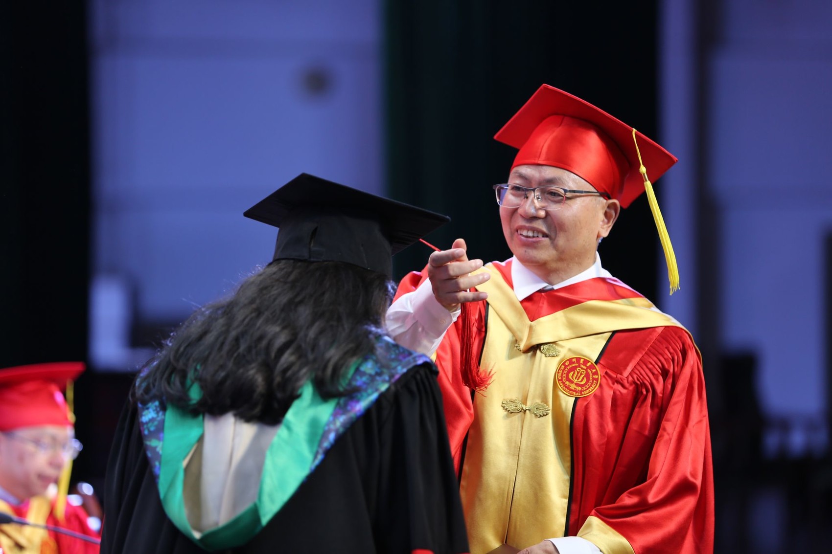 在2024届研究生毕业典礼上,吴德对毕业生说,你们即将踏上人生新的征程,给自己鼓掌是鼓励自己前行的最大动力,但敏锐地洞察形势变化,随时做好迎接可能出现的困难和挑战的准备,是每个人不断迈向人生巅峰的关键所在。