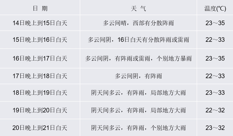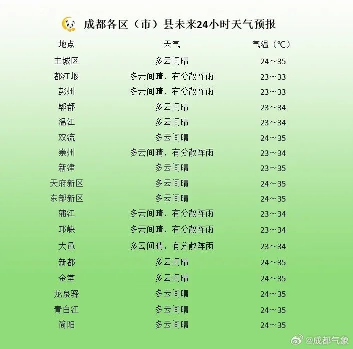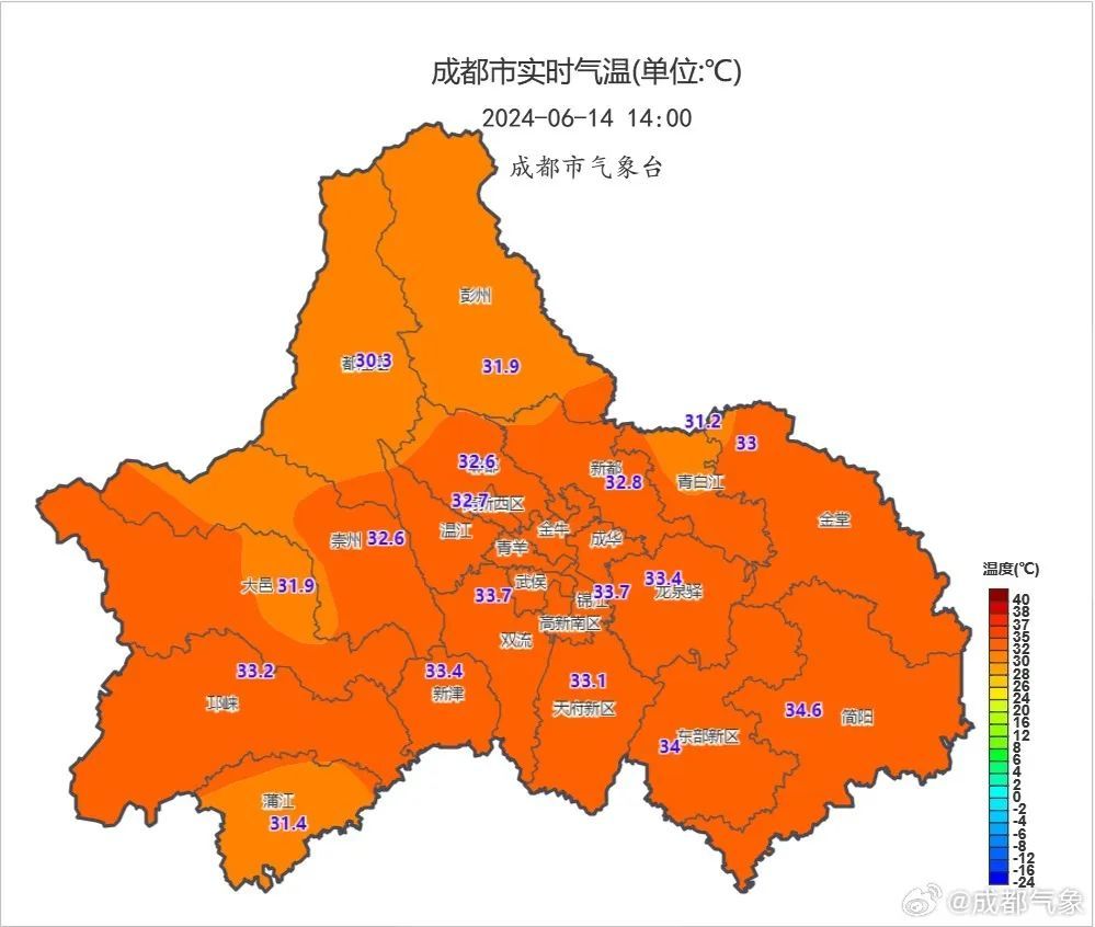 24小时内:盆地最低气温:22~24℃;最高气温:34~37℃。