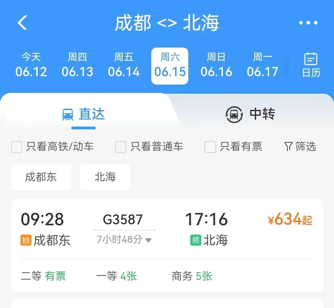 成都7小时48分钟到北海