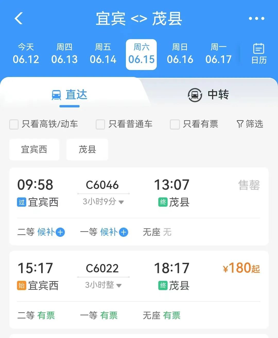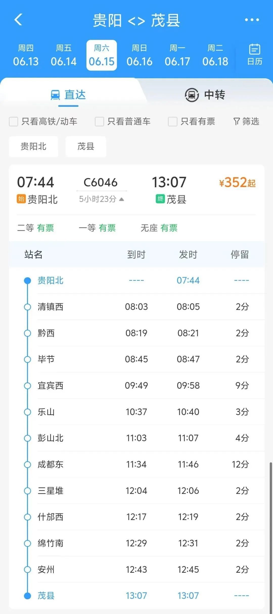 根据铁路12306App显示