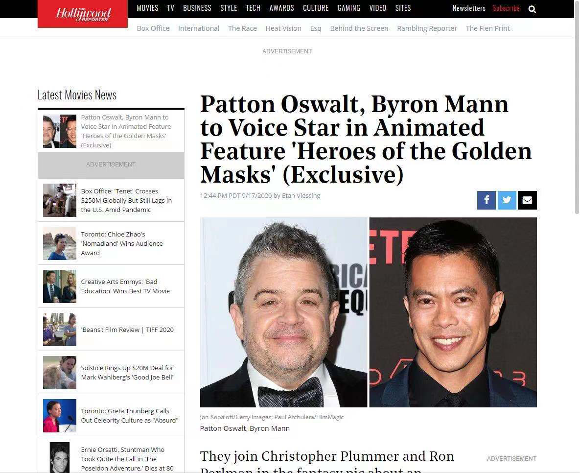 据了解,以《金色面具英雄》为封面的《动画杂志》,在圣迭戈漫展的邮件中已获得2200万人次的点击率,社会各界给予高度关注和评价。同时,今年9月,全球知名娱乐杂志《好莱坞报道者》对《金色面具英雄》动画电影签约的知名配音演员进行了专题报道。