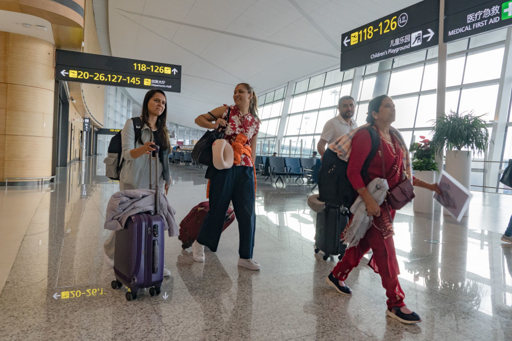 2024年6月13日,旅客行走在成都天府国际机场T1航站楼内。新华社记者 唐文豪 摄