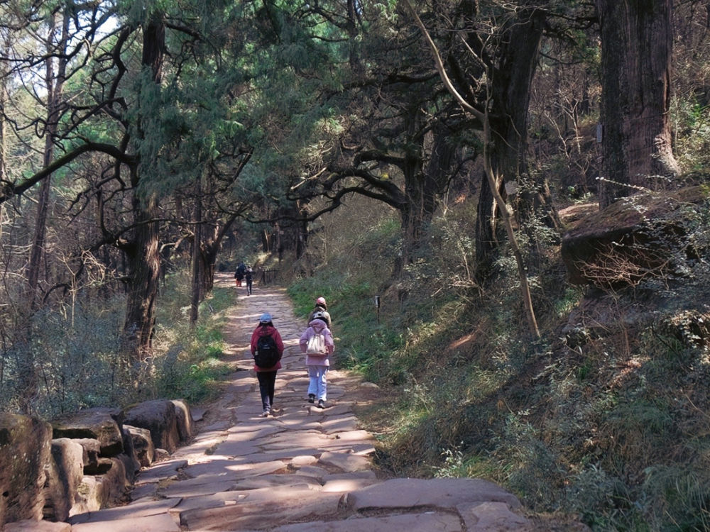 2024年3月9日,游客在位于四川省广元市剑阁县的金牛道行走。新华社记者 唐文豪 摄
