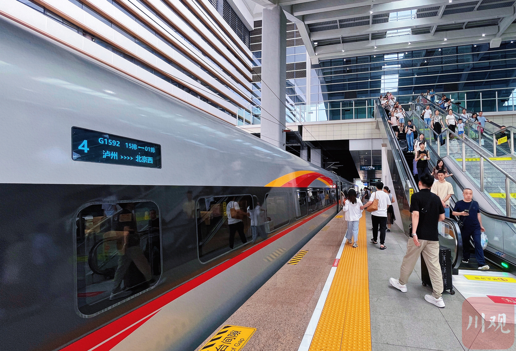 6月16日上午9时34分,泸州首发至北京西的高铁列车G1592从泸州站缓缓驶出。之后,这辆列车将经成自、西成、郑西、京广等高铁线路,在20时35分到达终点北京西站。