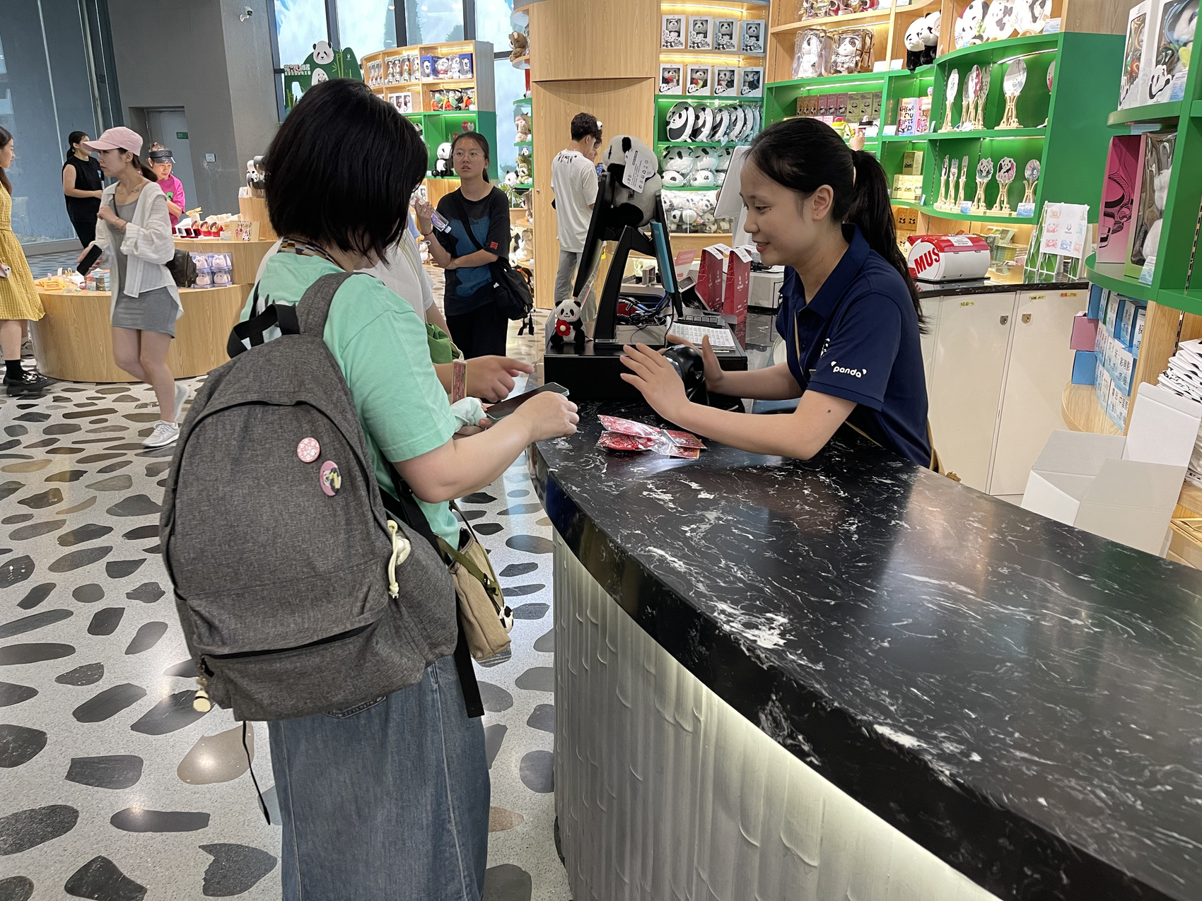 “滴!”伴随扫码支付的清脆声响,参与此次“‘你好!中国·安逸四川’日本旅行商走进四川暨大熊猫‘香香’再会之旅”活动的日本旅行商代表二木繁美将选购的数件熊猫纪念品从容收入行囊。