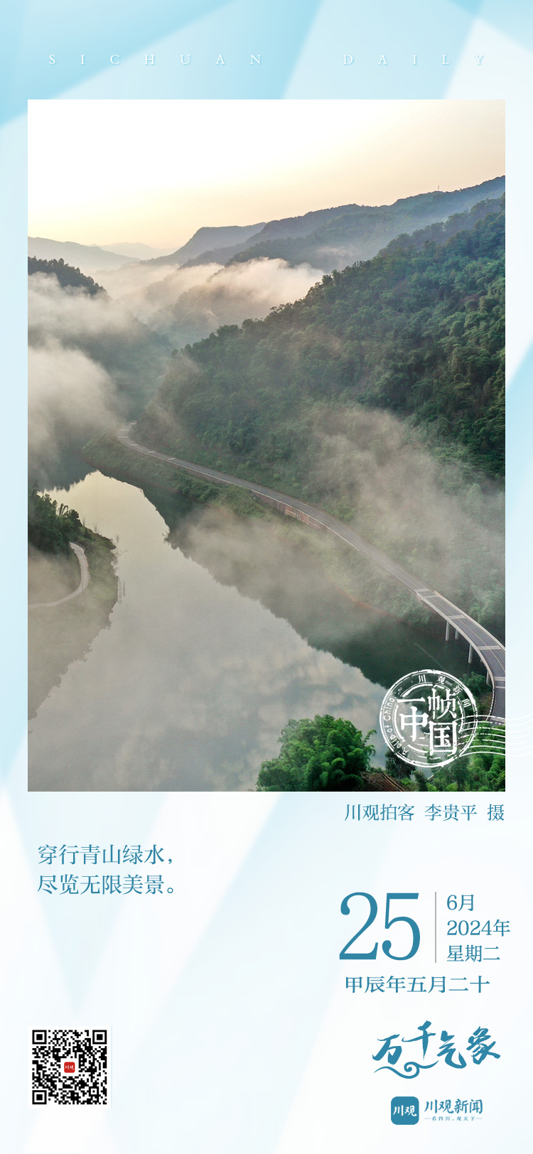 今天的《一帧中国》,川观新闻将带您走上国道546线纳溪至赤水段(川黔界)公路,这是一条穿梭在山水之间的“绿色走廊”,沿线竹林翠绿,河流幽深,美不胜收。
