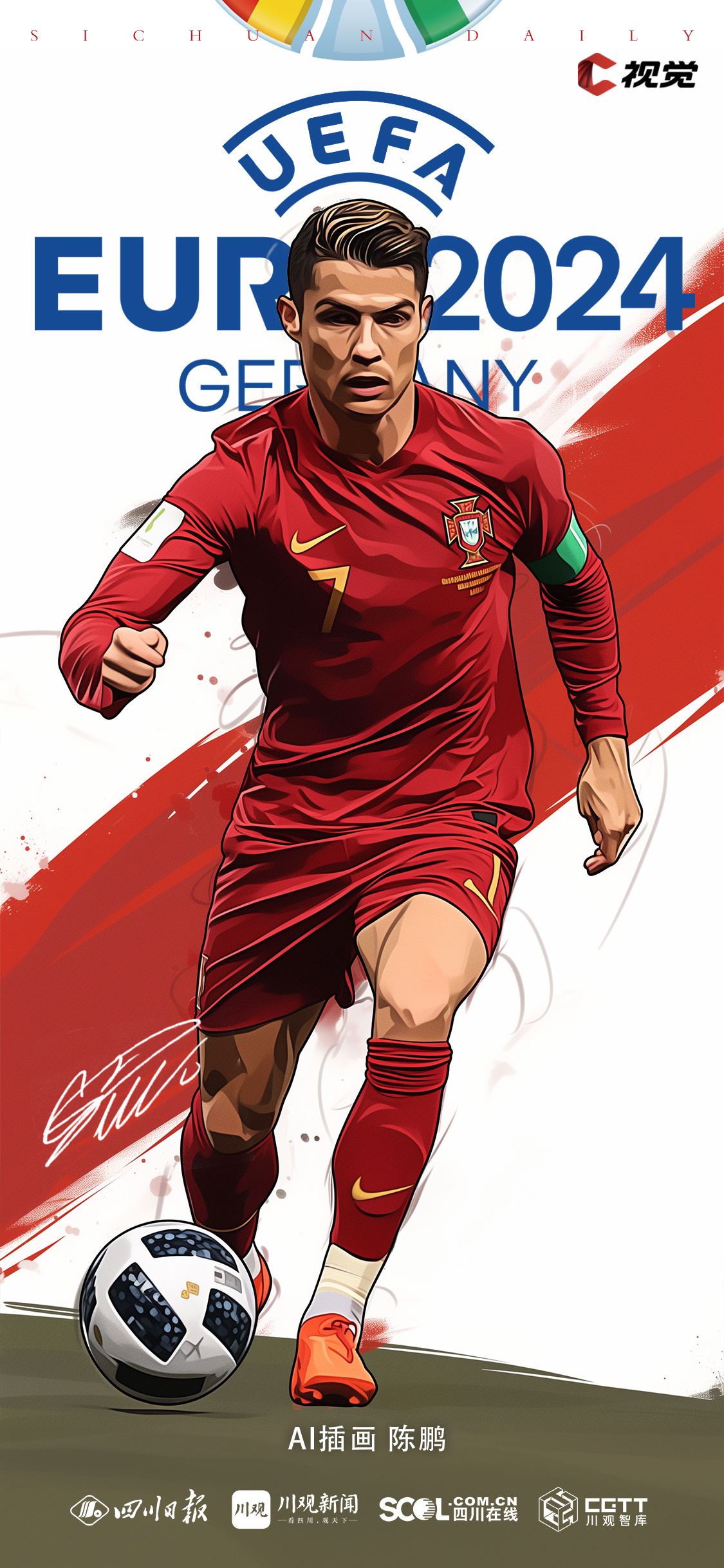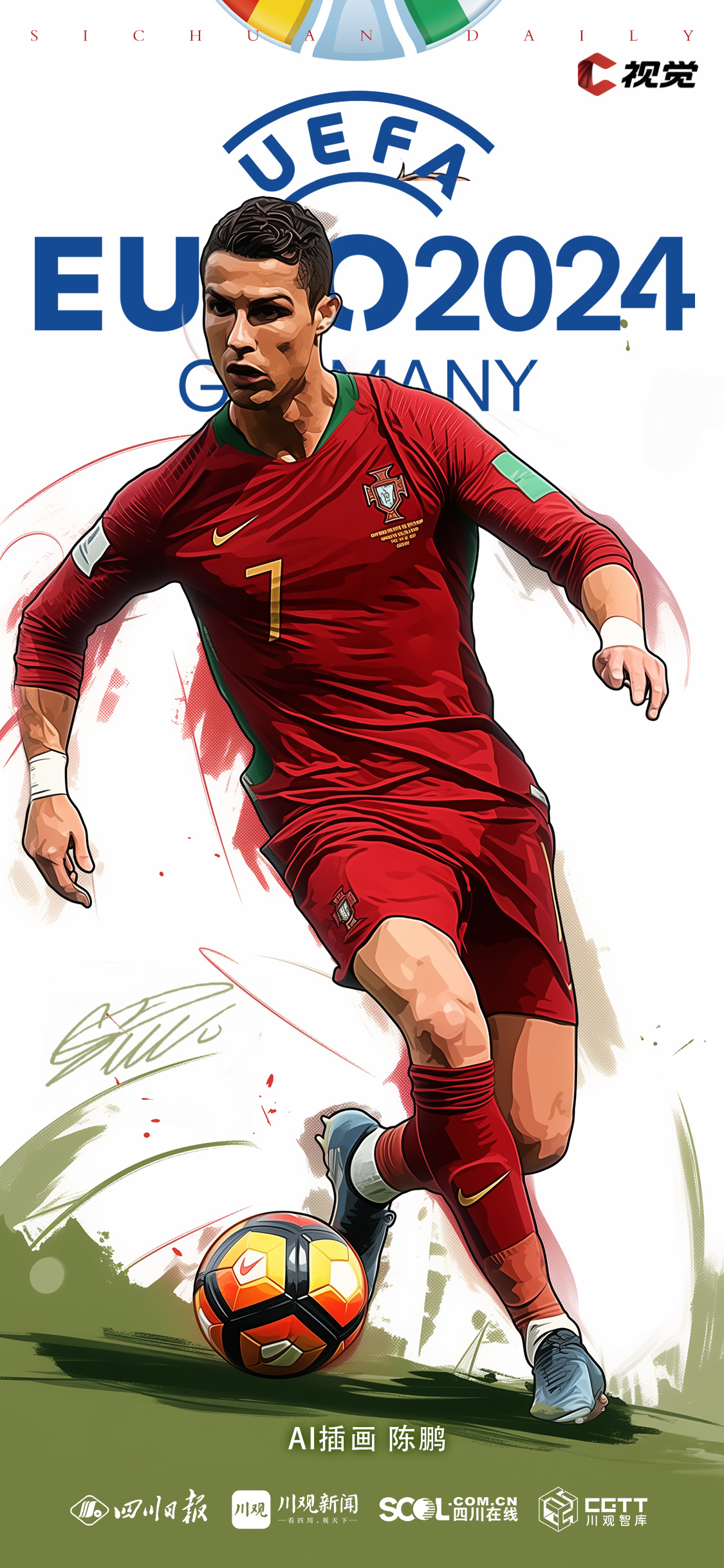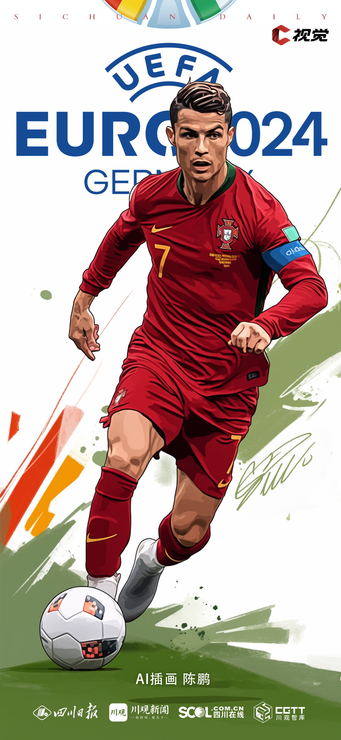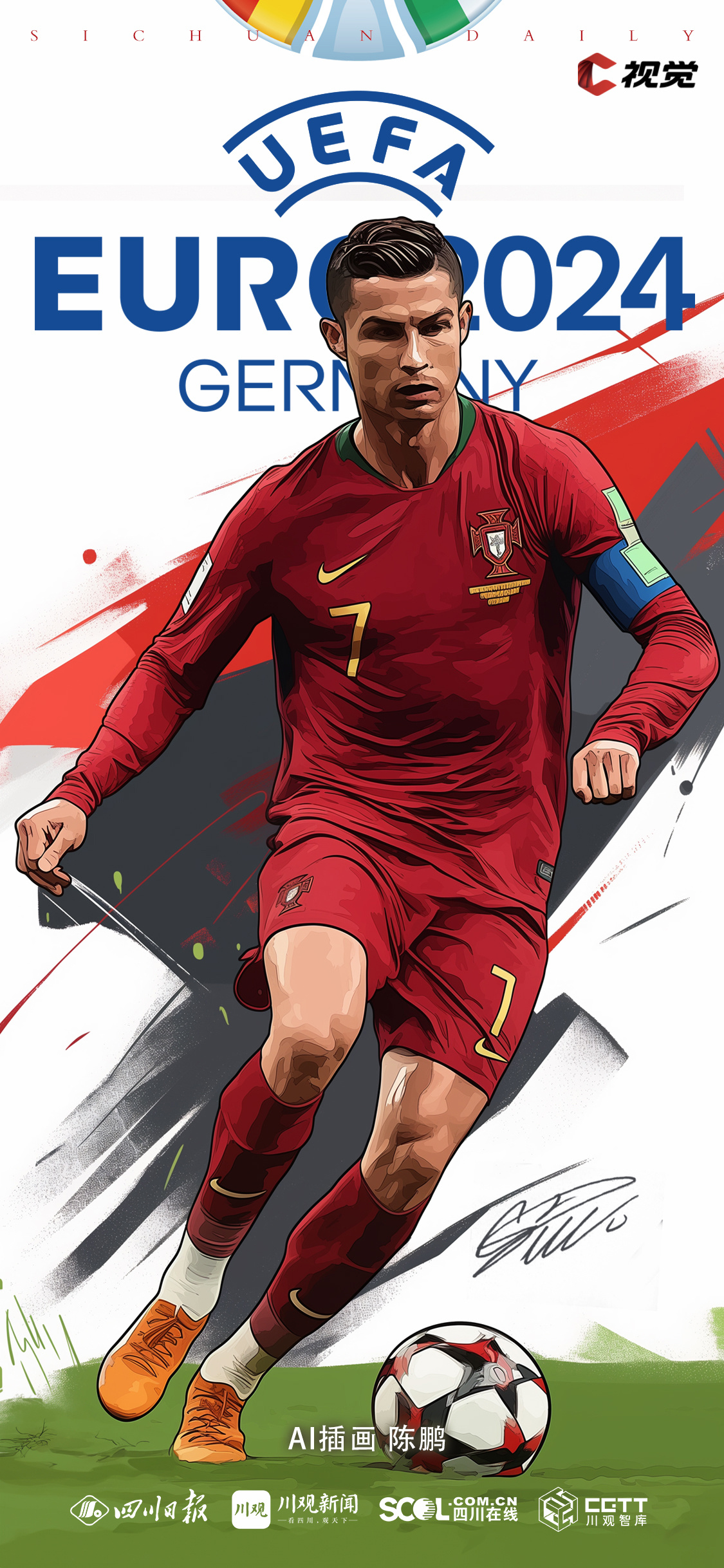 本期球星:葡萄牙队的C罗-克里斯蒂亚诺·罗纳尔多(Cristiano Ronaldo),1985年生。39岁“高龄”的C罗第六次踏上欧洲杯的赛场,他是历史上首位在4个不同国家的顶级联赛获得金靴的球员。C罗现效力沙特利雅得胜利足球俱乐部,2023年,他成为沙特联赛年度最佳射手(54球)。 今年,葡萄牙队在本届欧锦赛与格鲁吉亚、土耳其和捷克队同分在F组,C罗能否带领葡萄牙队争夺冠军,值得期待。