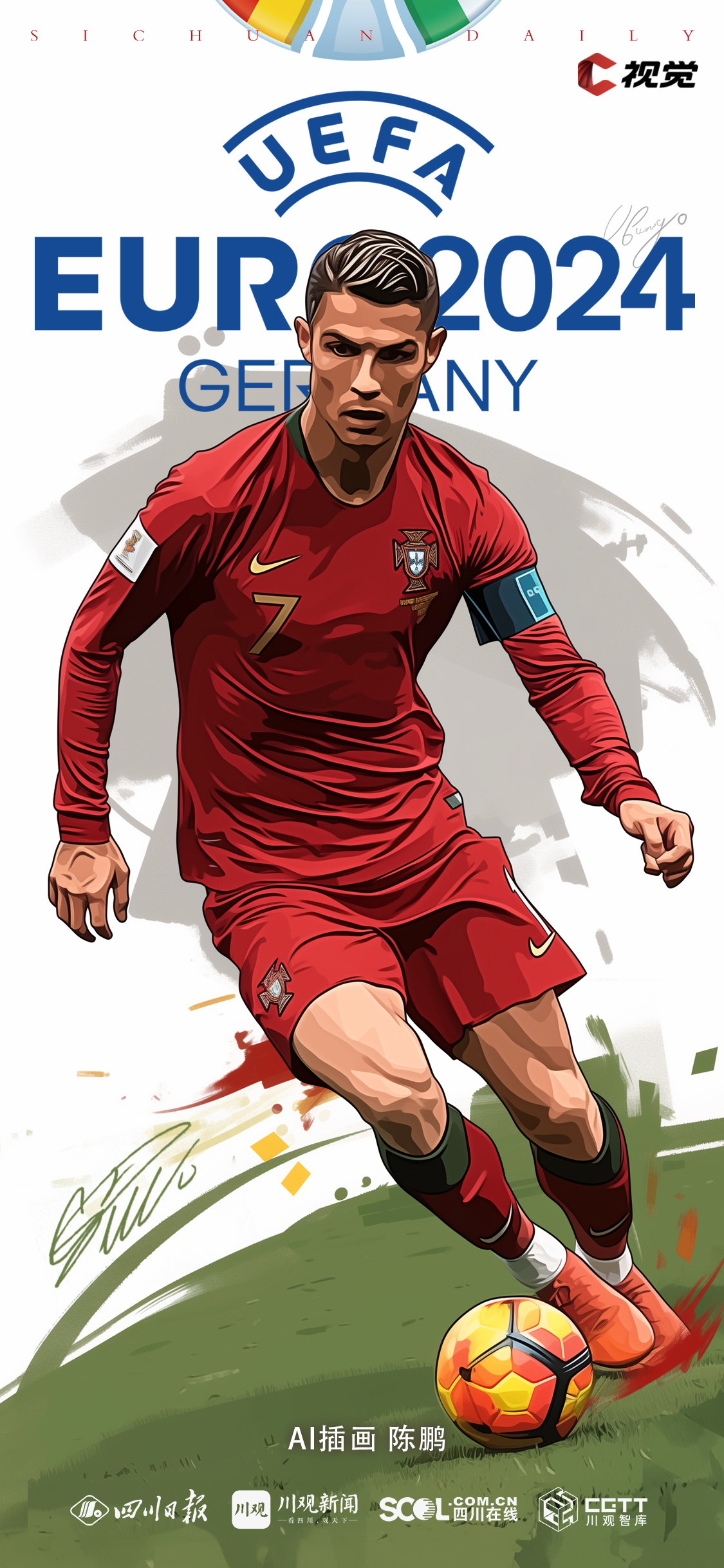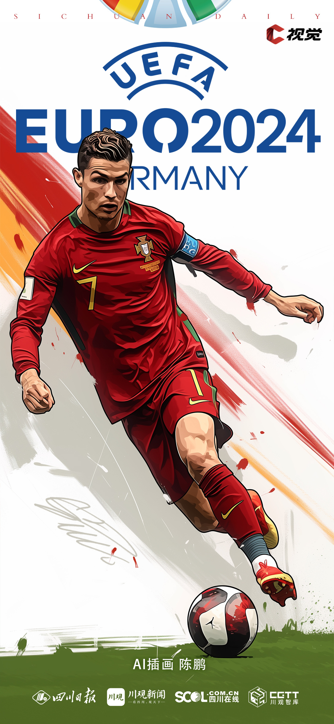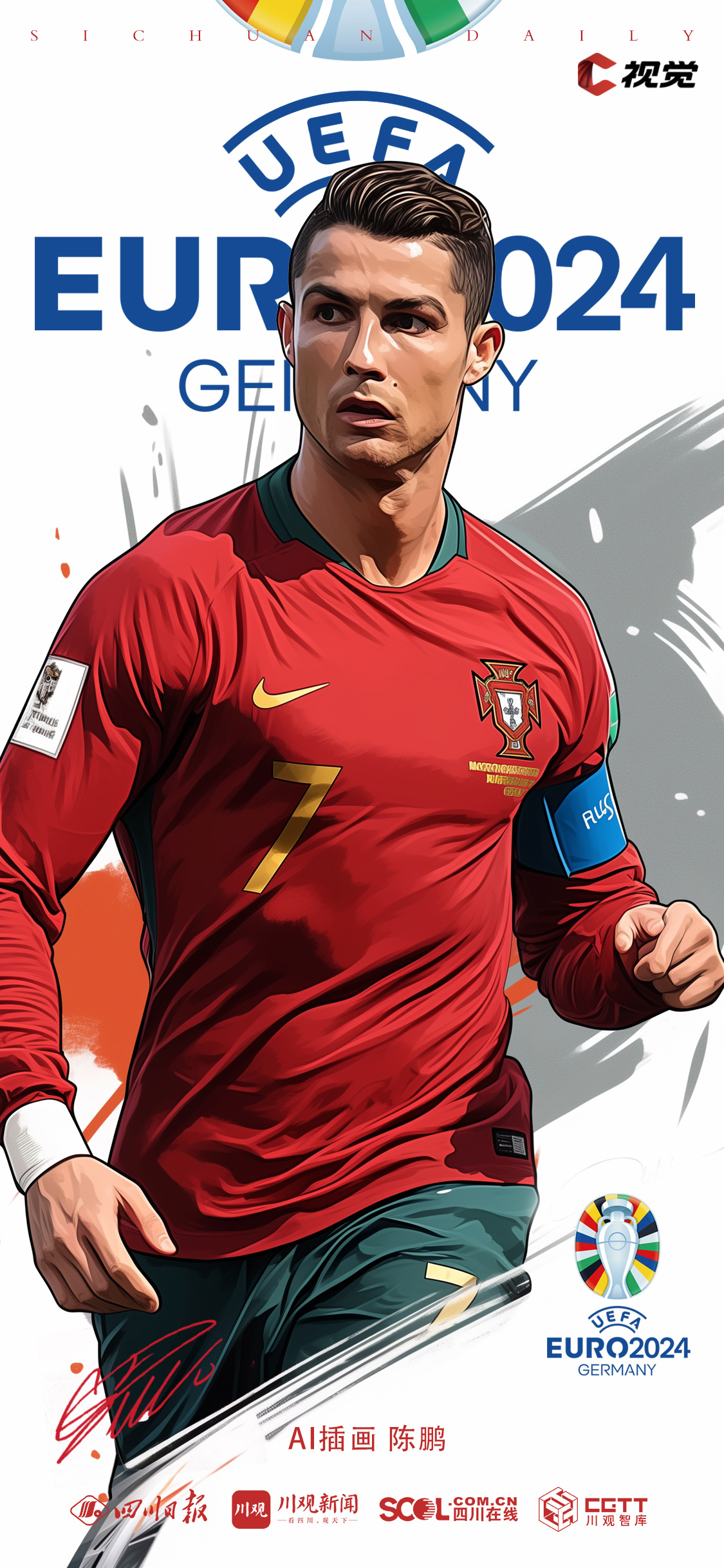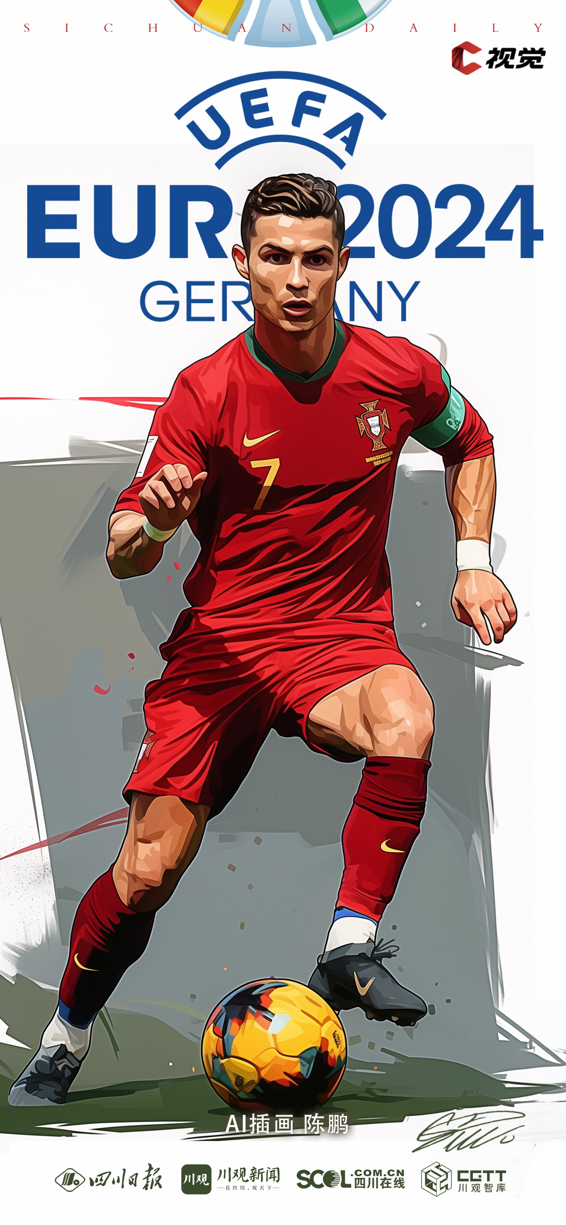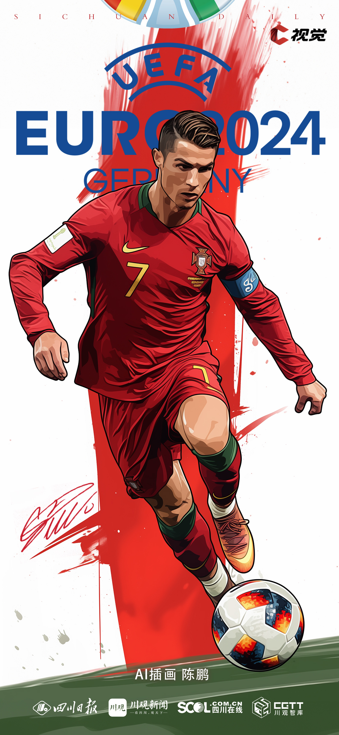 本期球星:葡萄牙队的C罗-克里斯蒂亚诺·罗纳尔多(Cristiano Ronaldo),1985年生。39岁“高龄”的C罗第六次踏上欧洲杯的赛场,他是历史上首位在4个不同国家的顶级联赛获得金靴的球员。C罗现效力沙特利雅得胜利足球俱乐部,2023年,他成为沙特联赛年度最佳射手(54球)。 今年,葡萄牙队在本届欧锦赛与格鲁吉亚、土耳其和捷克队同分在F组,C罗能否带领葡萄牙队争夺冠军,值得期待。