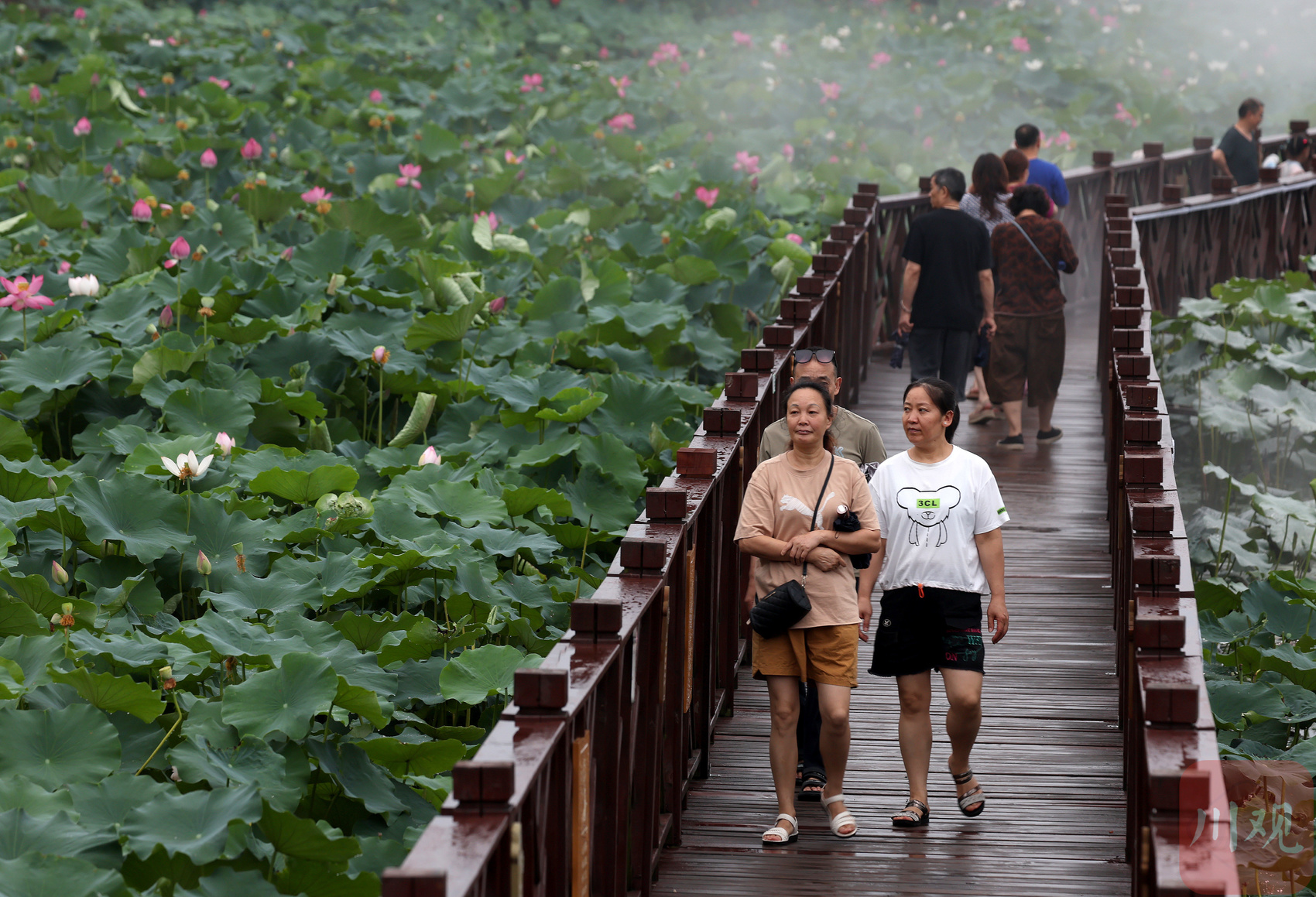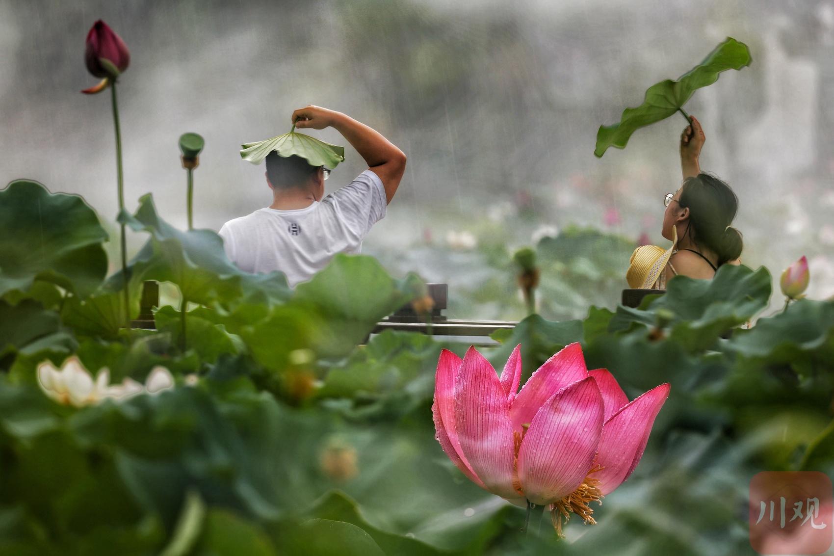夏日里的阵雨总是不期而至,6月16日下午,成都市新津区安西镇的千亩荷塘意外地迎来了一场这样的邂逅。