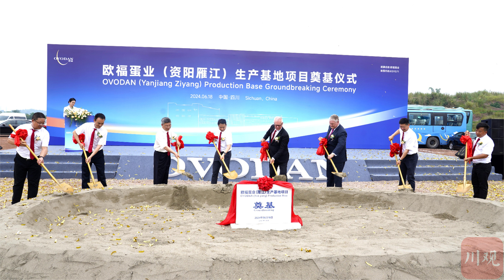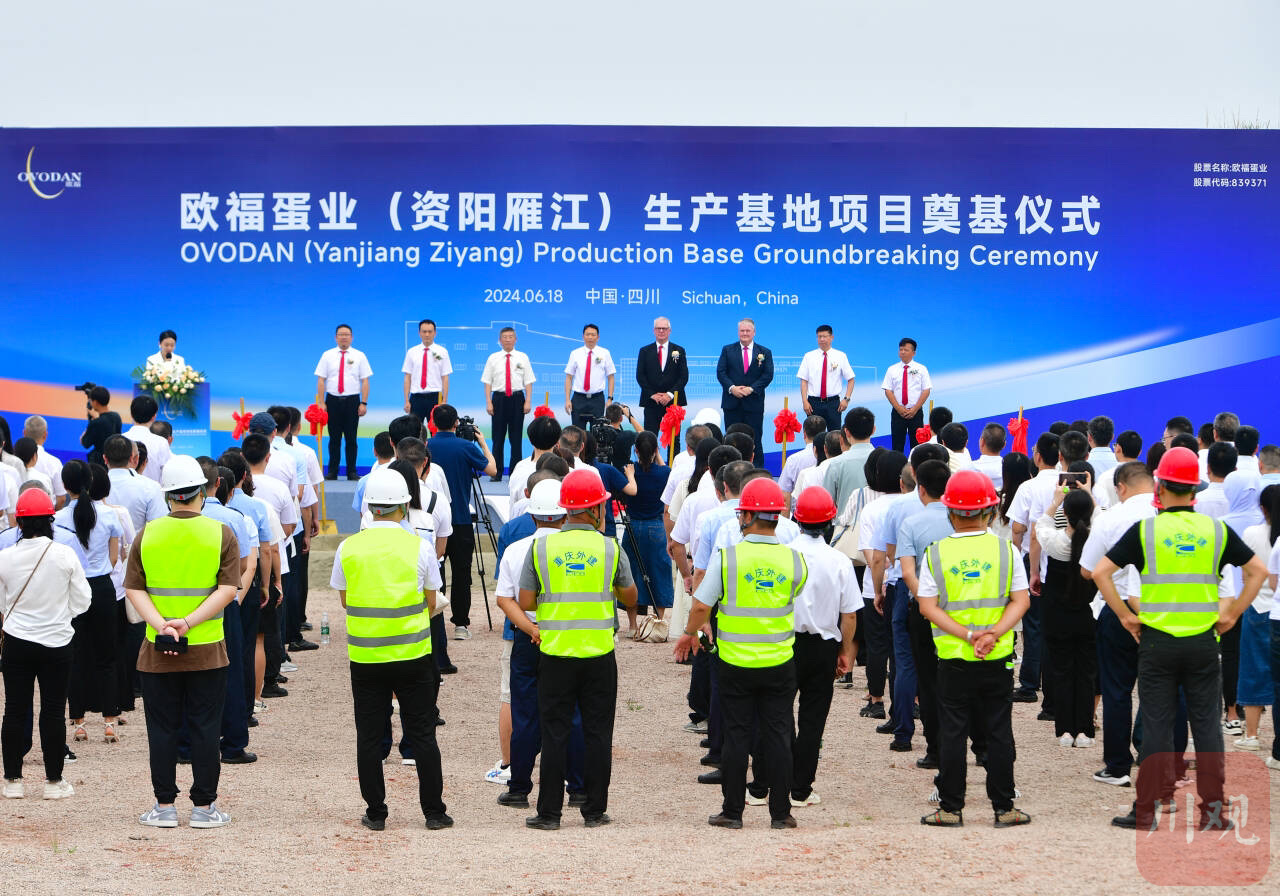 6月18日,四川欧福蛋业(资阳雁江)生产基地项目举行开工奠基仪式。上午11时,在雁江区城东医药食品产业园内的一片工地上,伴随着礼炮的轰隆声和工程车的鸣笛声,参会嘉宾共同挥锹铲沙、培土奠基,宣告项目进入实质性工程建设阶段。