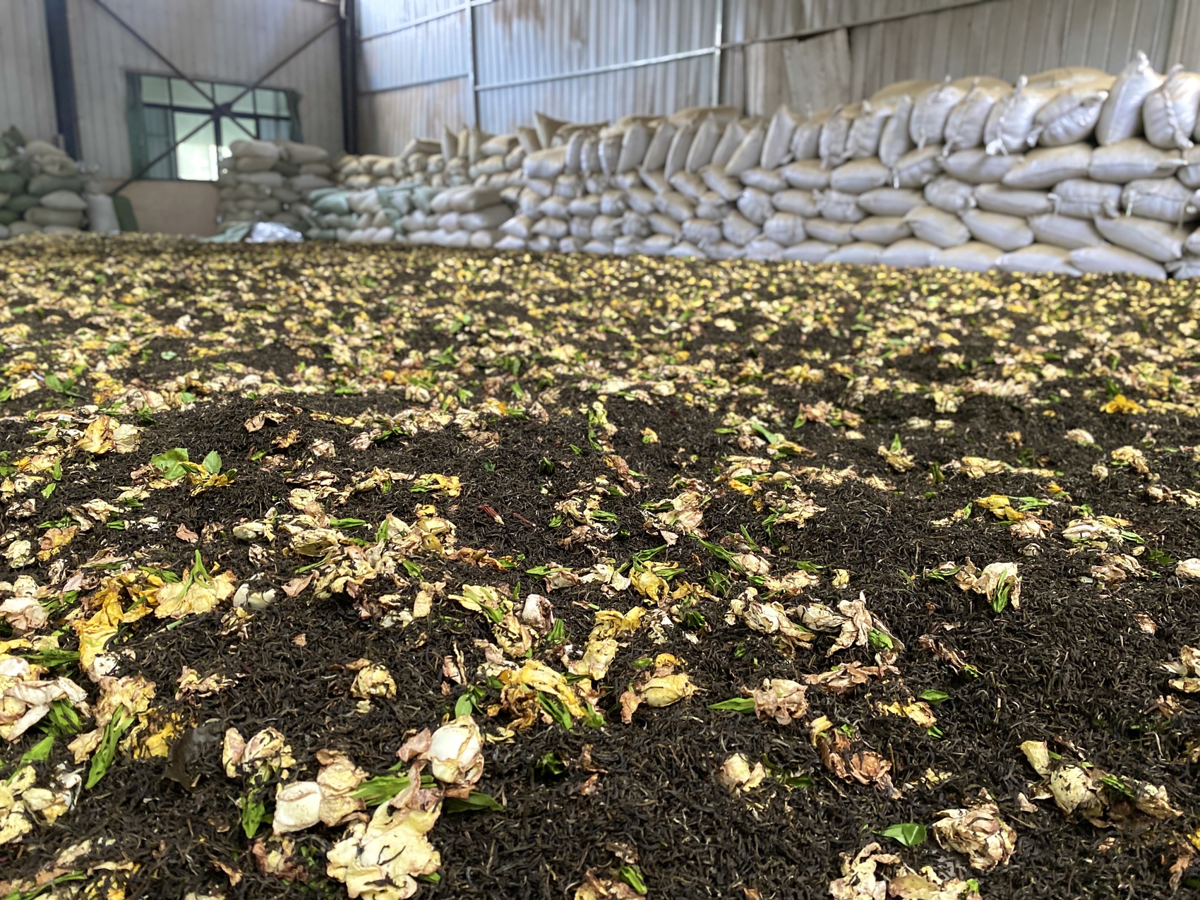 自贡市巅峰仙芽茶业有限公司正在窨制中的栀子花茶。
