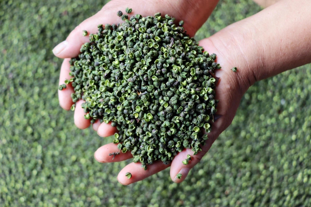 6月19日,在宜宾市珙县巡场镇德田村1100亩青花椒基地里,几十名工人正在进行紧张的采收工作,一筐筐青花椒从地头运往附近的青花椒加工厂进行烘干、脱粒和脱刺。经过加工的青花椒便于储存和运输,能够延长保质期,满足市场对青花椒长期供应的需求。