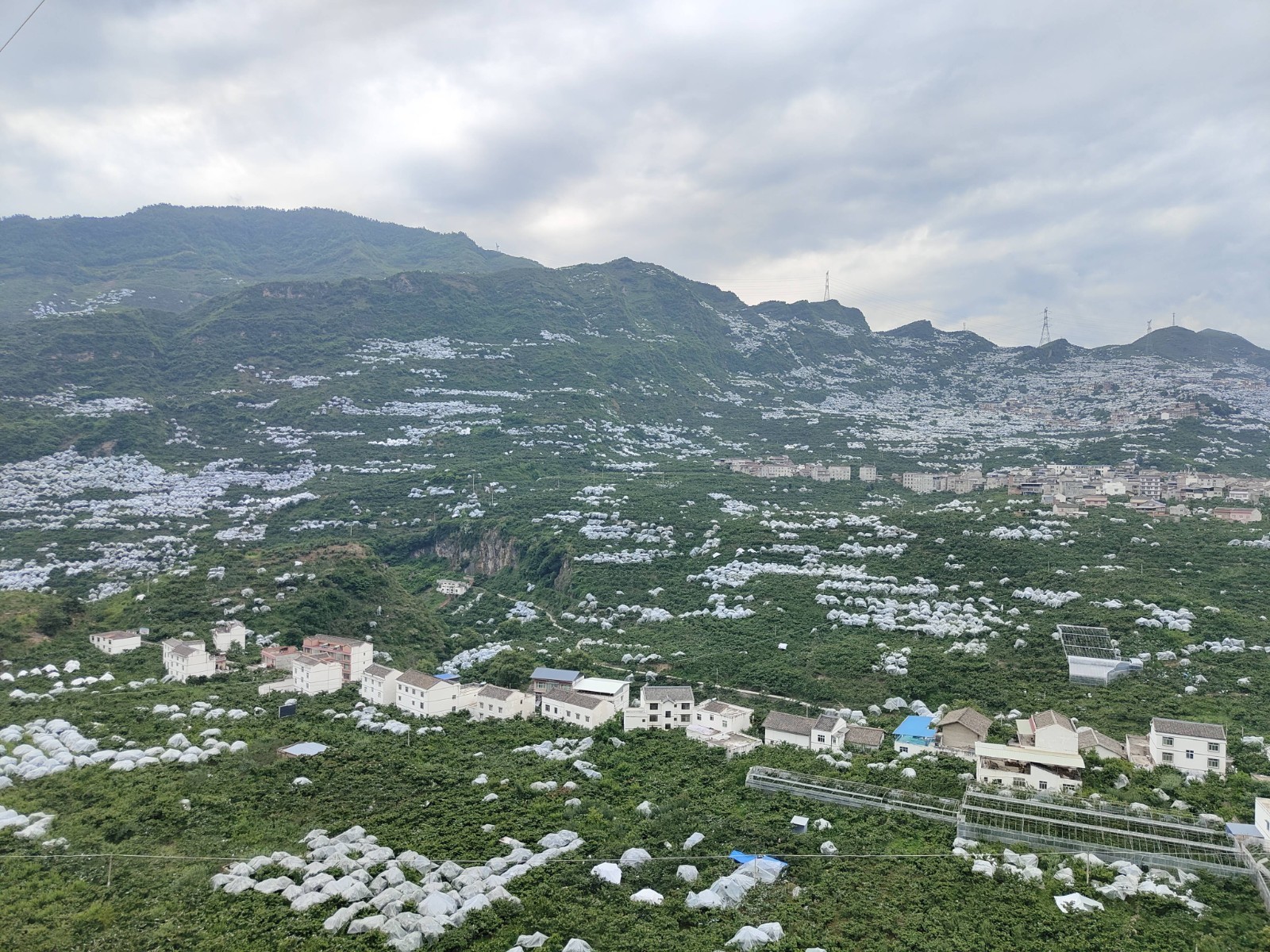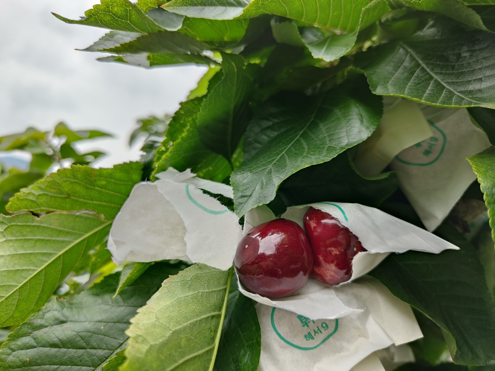 为了降低雨水对甜樱桃果的影响,近年来,避雨栽培以及套袋技术在汉源甜樱桃中普遍推开。即在甜樱桃挂果期,在树上覆盖一层白色薄膜,在果实上套一层纸袋。这一措施,也造就了4月之后汉源漫山遍野白茫茫一片的壮观景象。