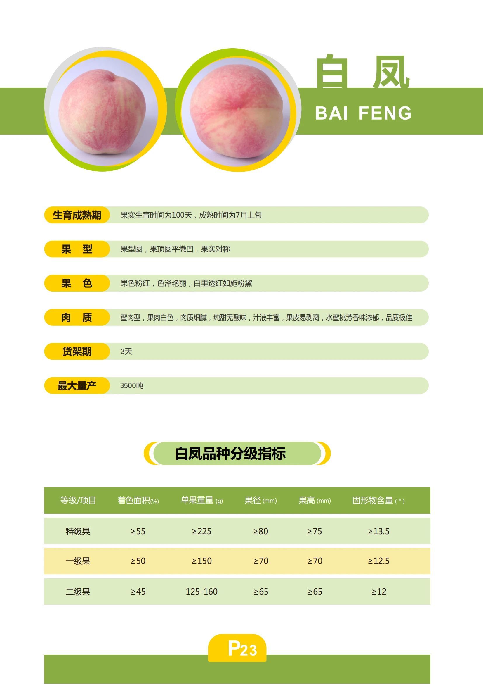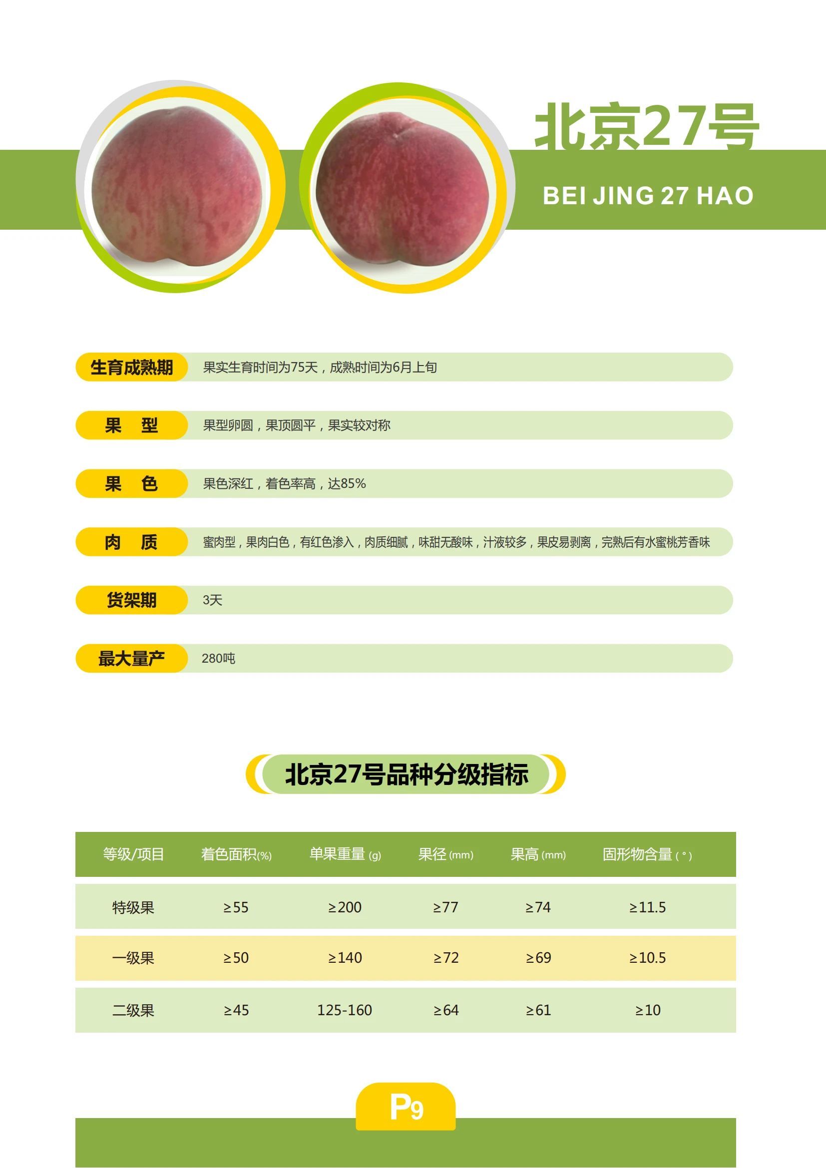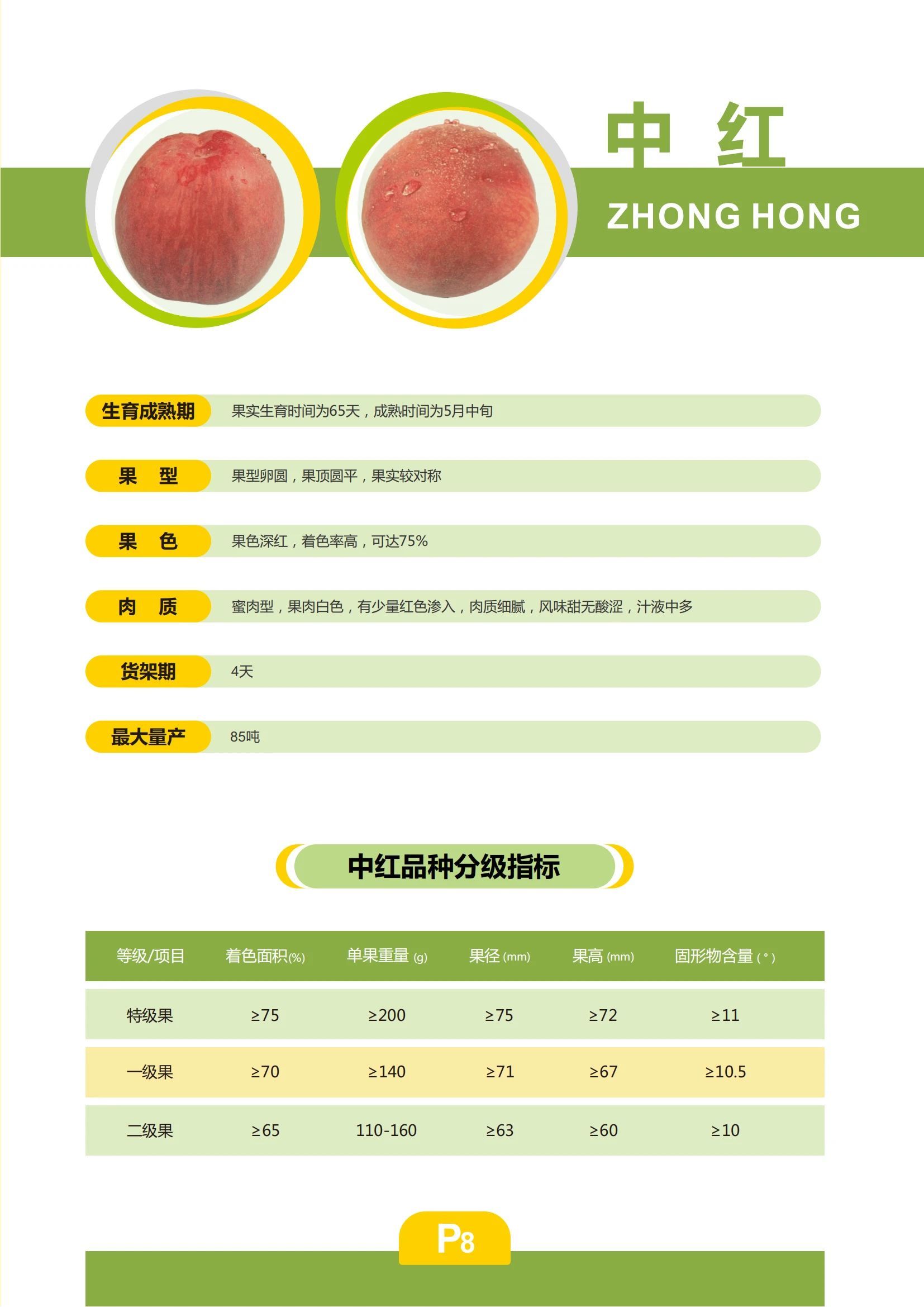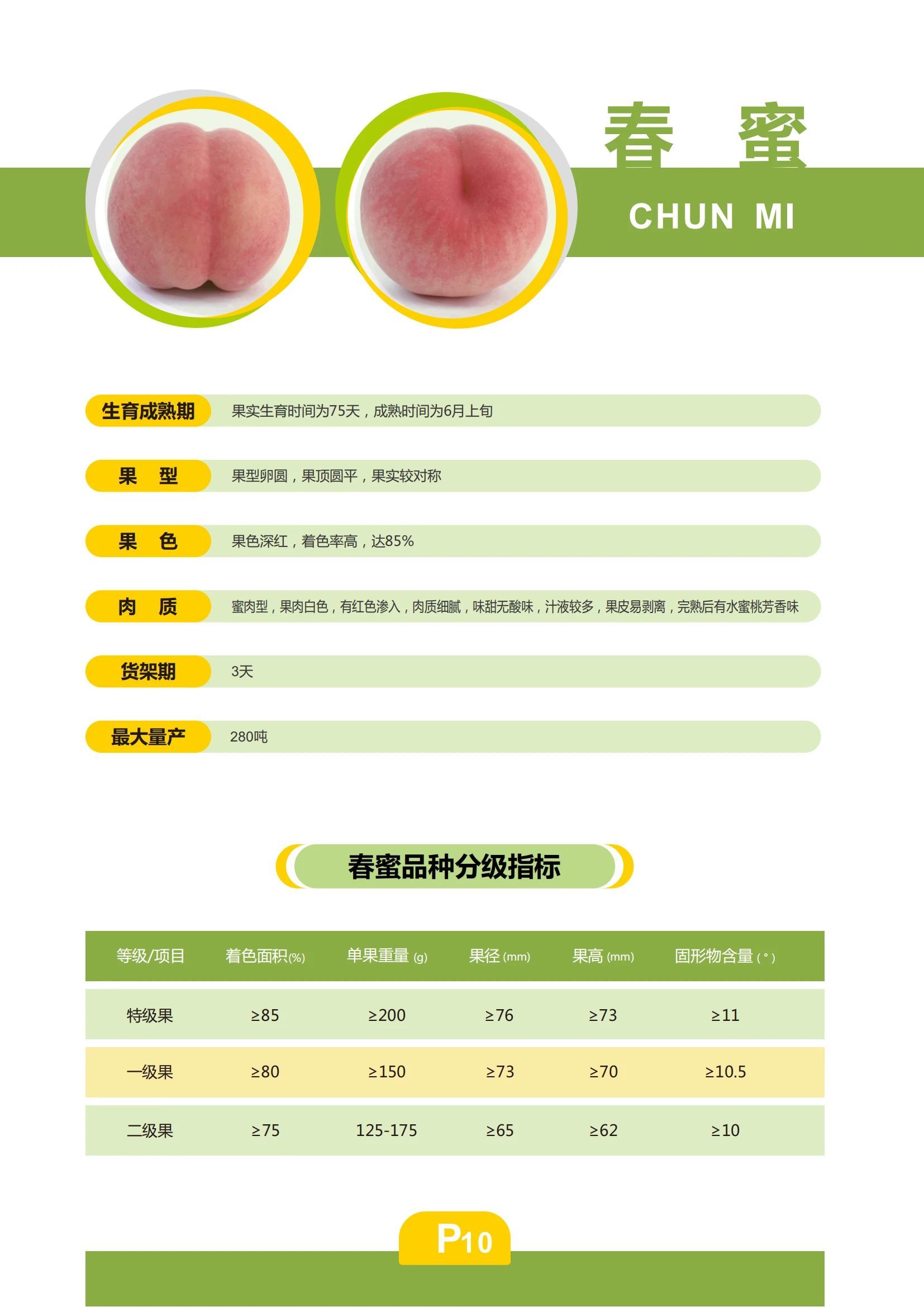 本标准分列了包括中红、北京27号、春蜜、红玉、金阳、白凤、晚湖景、京艳等在内的28个水蜜桃品种的特性、分级指标。其中,分级指标从着色面积、单果重量、果径、果高、固形物含量等进行了具体标准要求。与以往通过单果重量分等级不同,评估水果甜度的固形物含量也是其重要指标。
