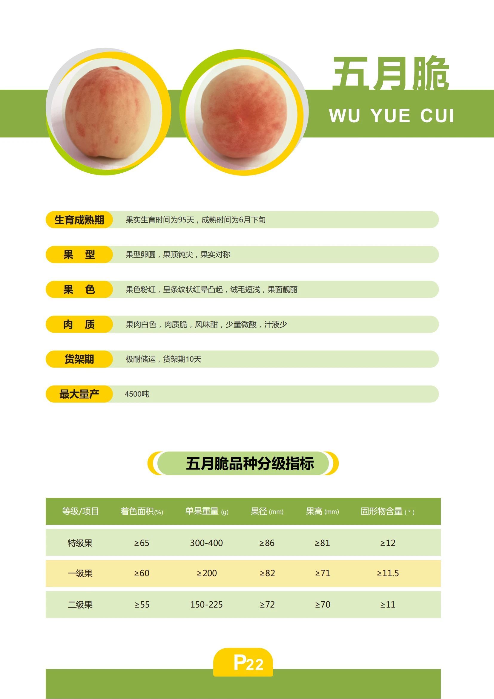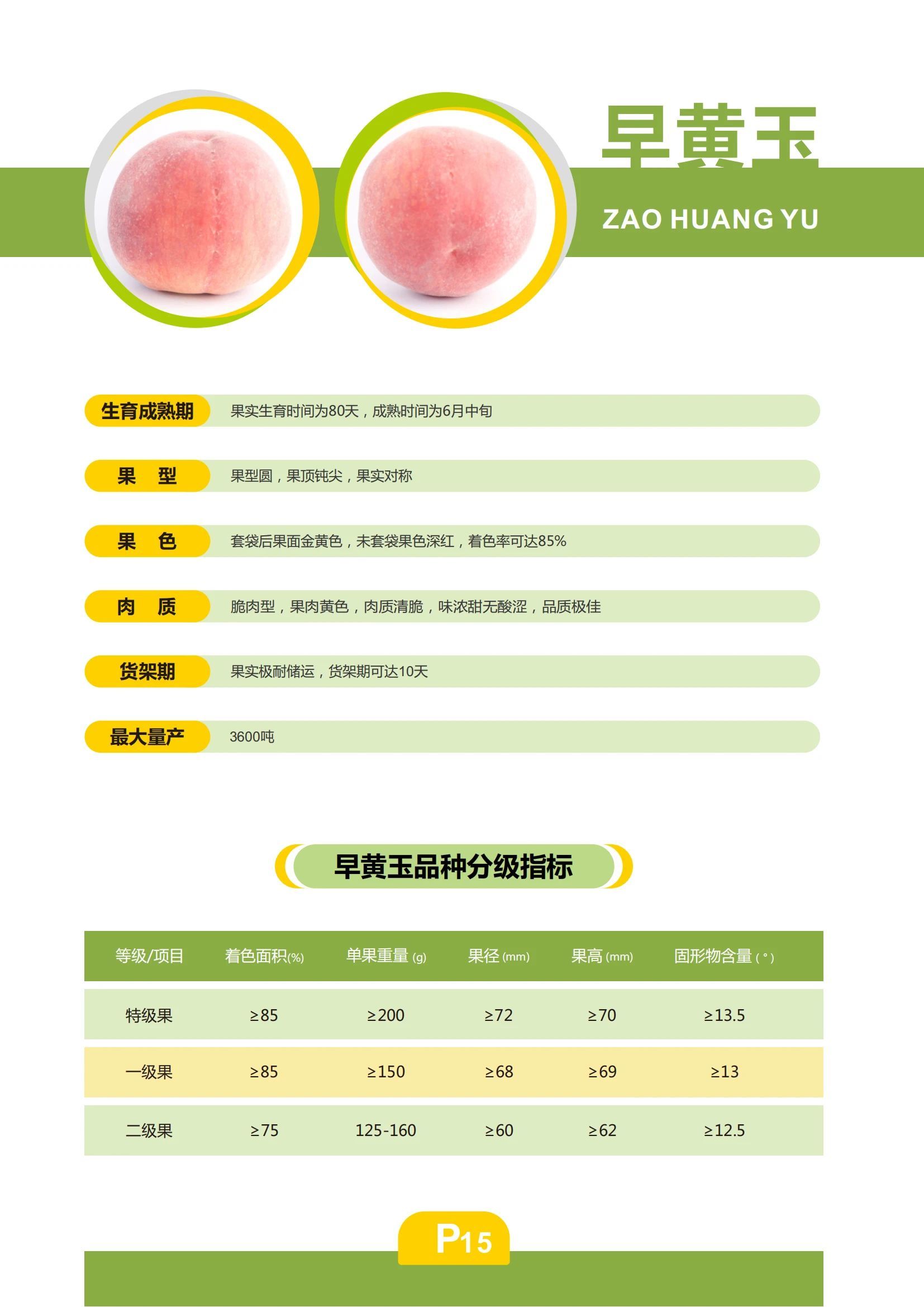 例如,6月中旬上市的早黄玉,特级要求单果重量在200克及以上,固形物含量为13.5%及以上;6月下旬上市的五月脆,特级要求单果重量在300至400克之间,固形物含量为12%及以上;此外,一级果和二级果也有明确的重量和固形物含量要求等。