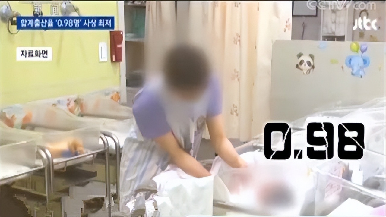 2018年,韩国生育率仅为0.98,成为当时全球唯一一个生育率跌破1的国家。(图源:央视新闻)