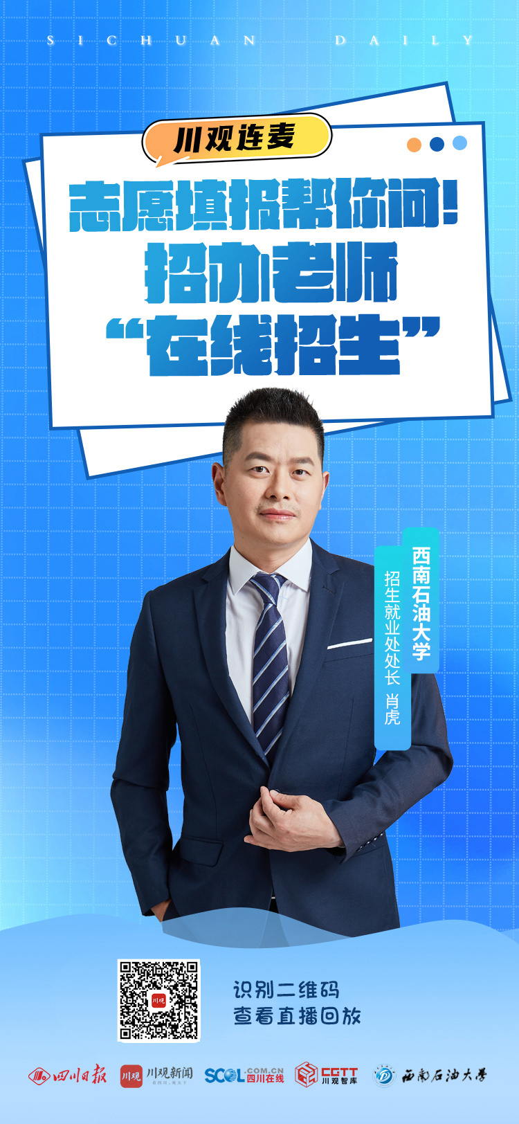 6月20日上午,四川日报·川观新闻继续推出“志愿填报帮你问!招办老师‘在线招生’”特别节目。西南石油大学招生就业处处长肖虎直播连麦,回答了广大考生和家长们关心的问题。