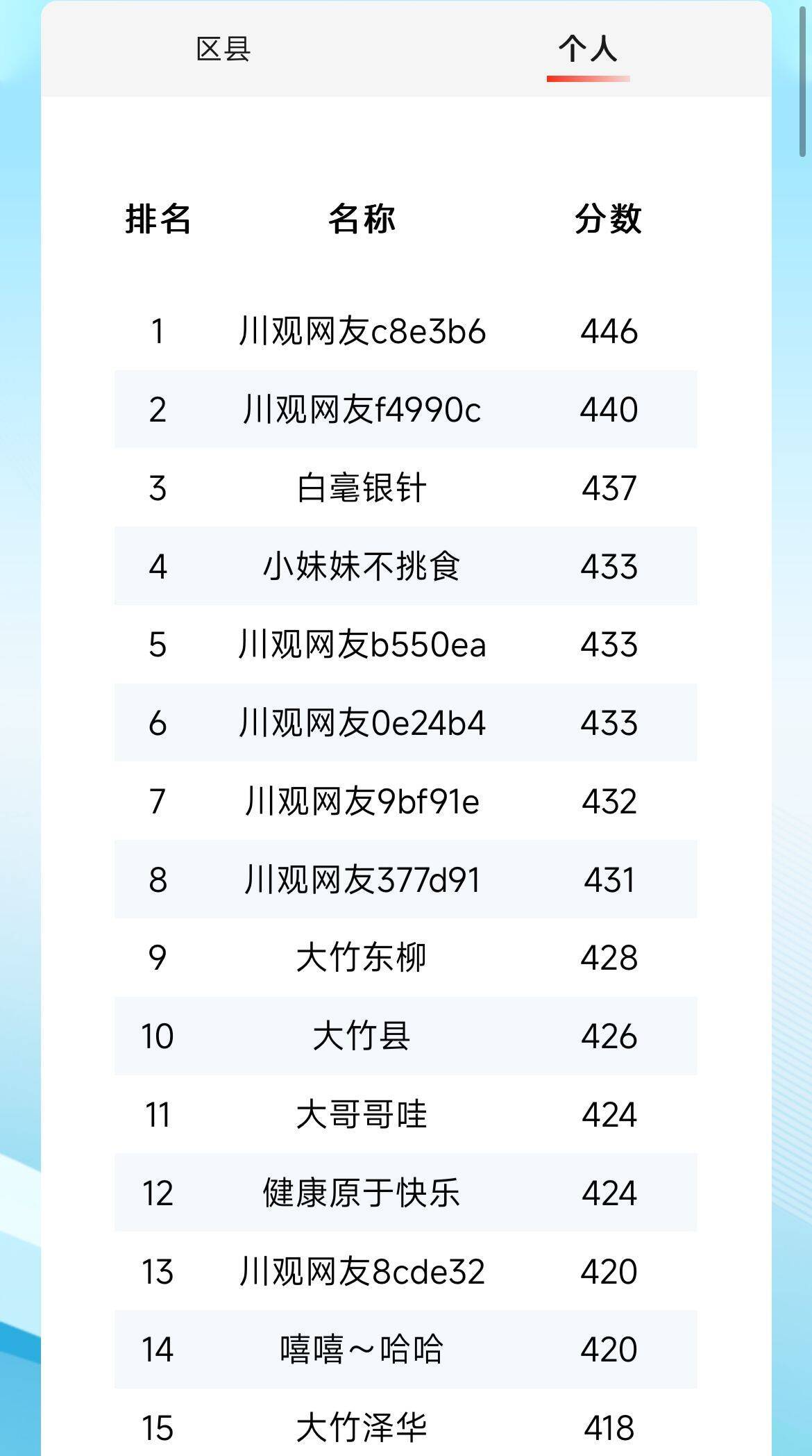 为更好反映参与活动情况,本次答题挑战赛特别设置了区县榜和个人榜。目前排名情况如何?