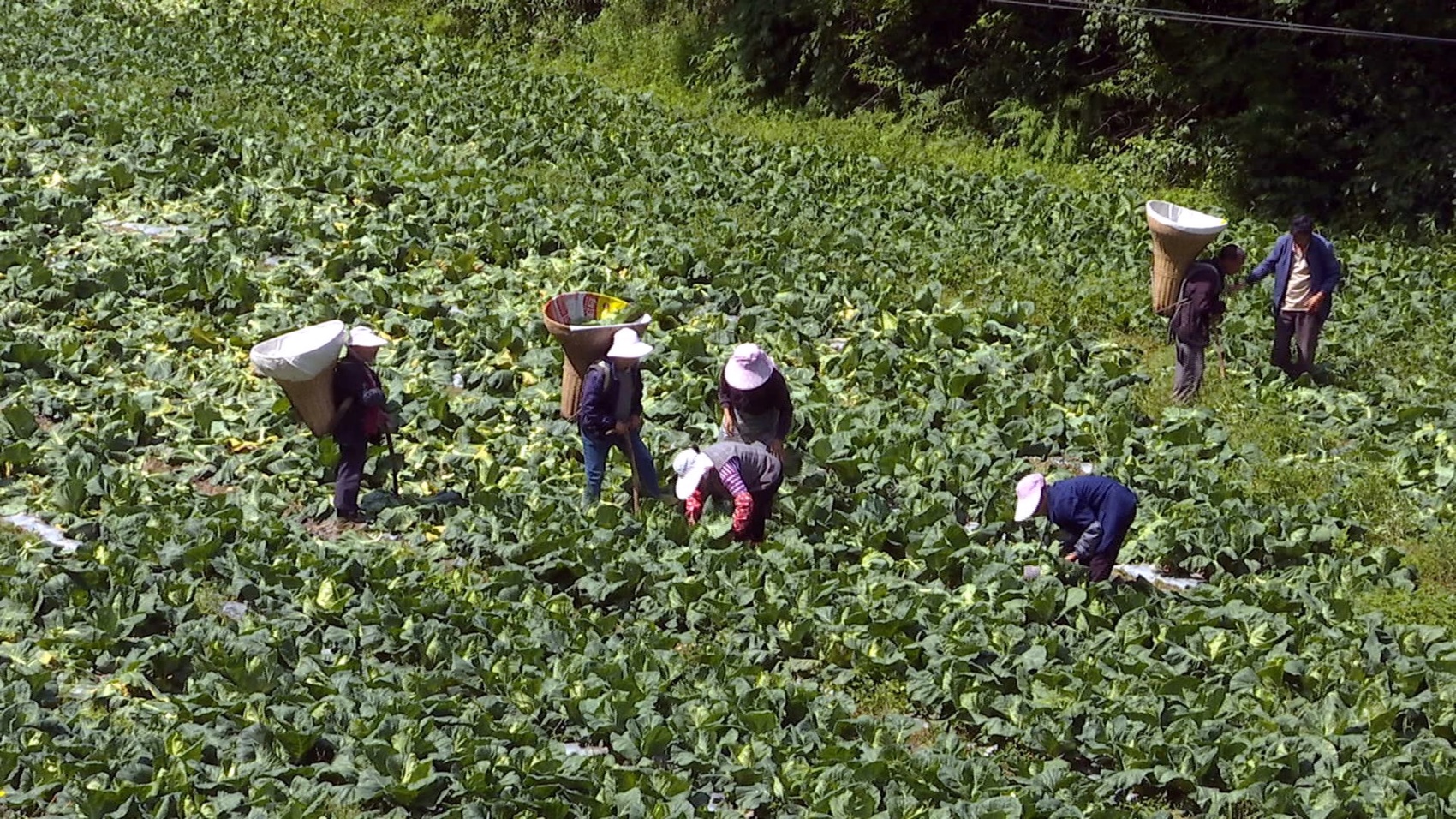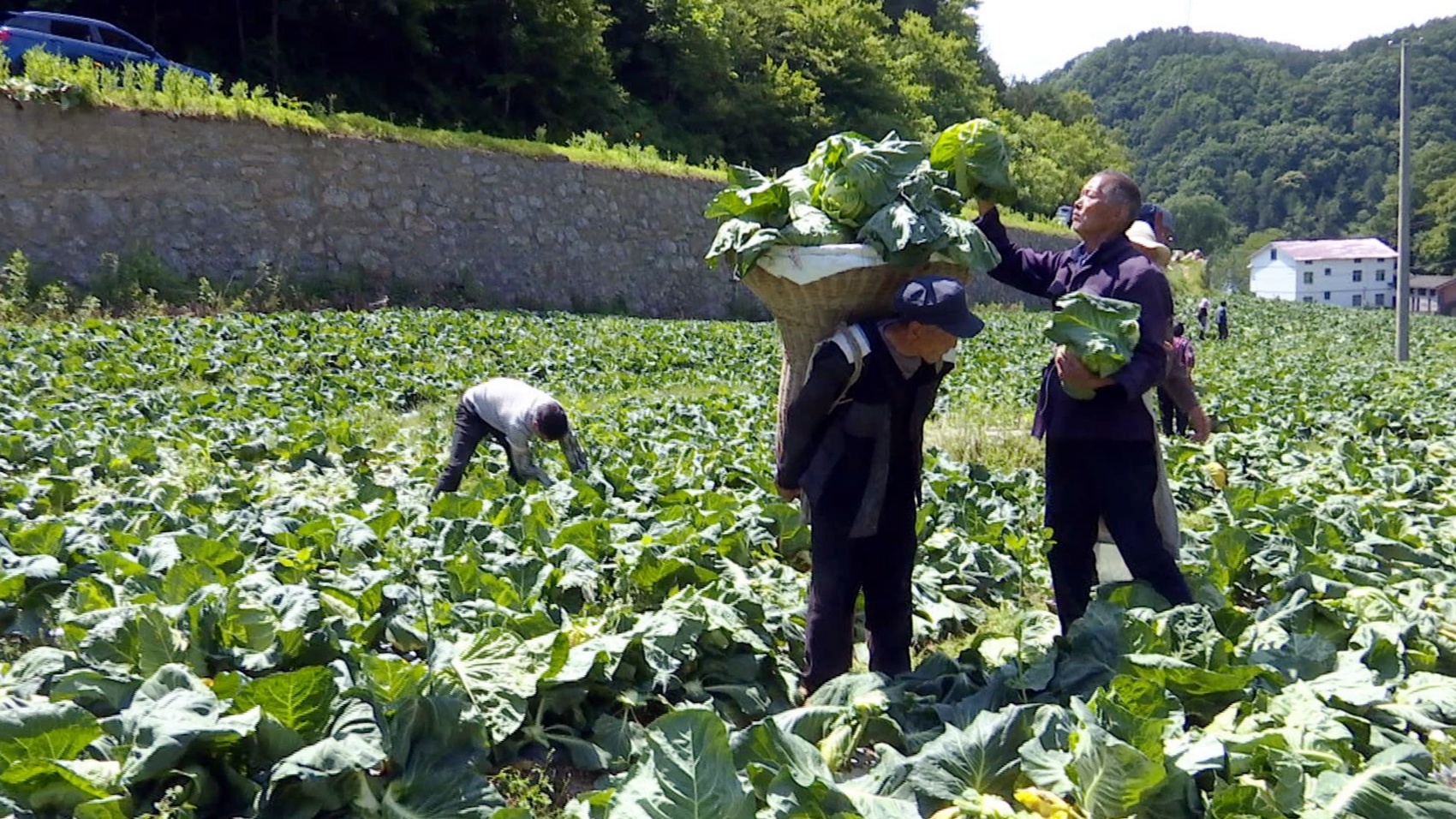 收割、搬运、称重、装车……6月19日,走进毛坝村,只见绿油油的牛心甘蓝个大饱满、长势喜人,村民们在菜地里娴熟地采收着,现场一派忙碌的丰收景象。