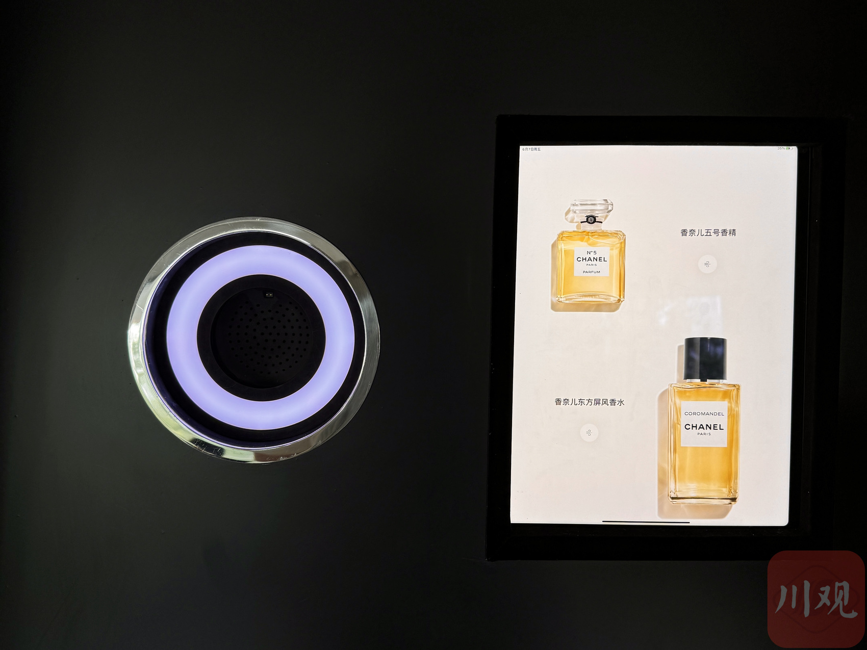 《香水的造艺》香奈儿限时体验之旅中,智能闻香体验仪带领观众体验香水“盲测”。