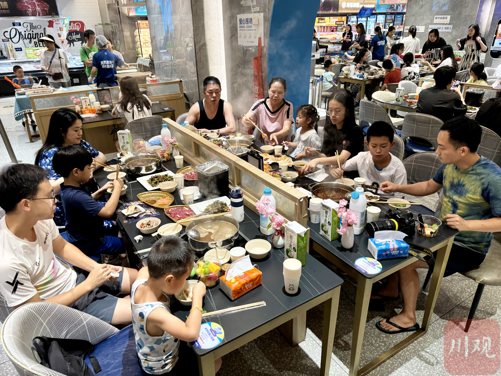 成都市民在超市烫火锅,品鉴盒马首场“全牛宴”。