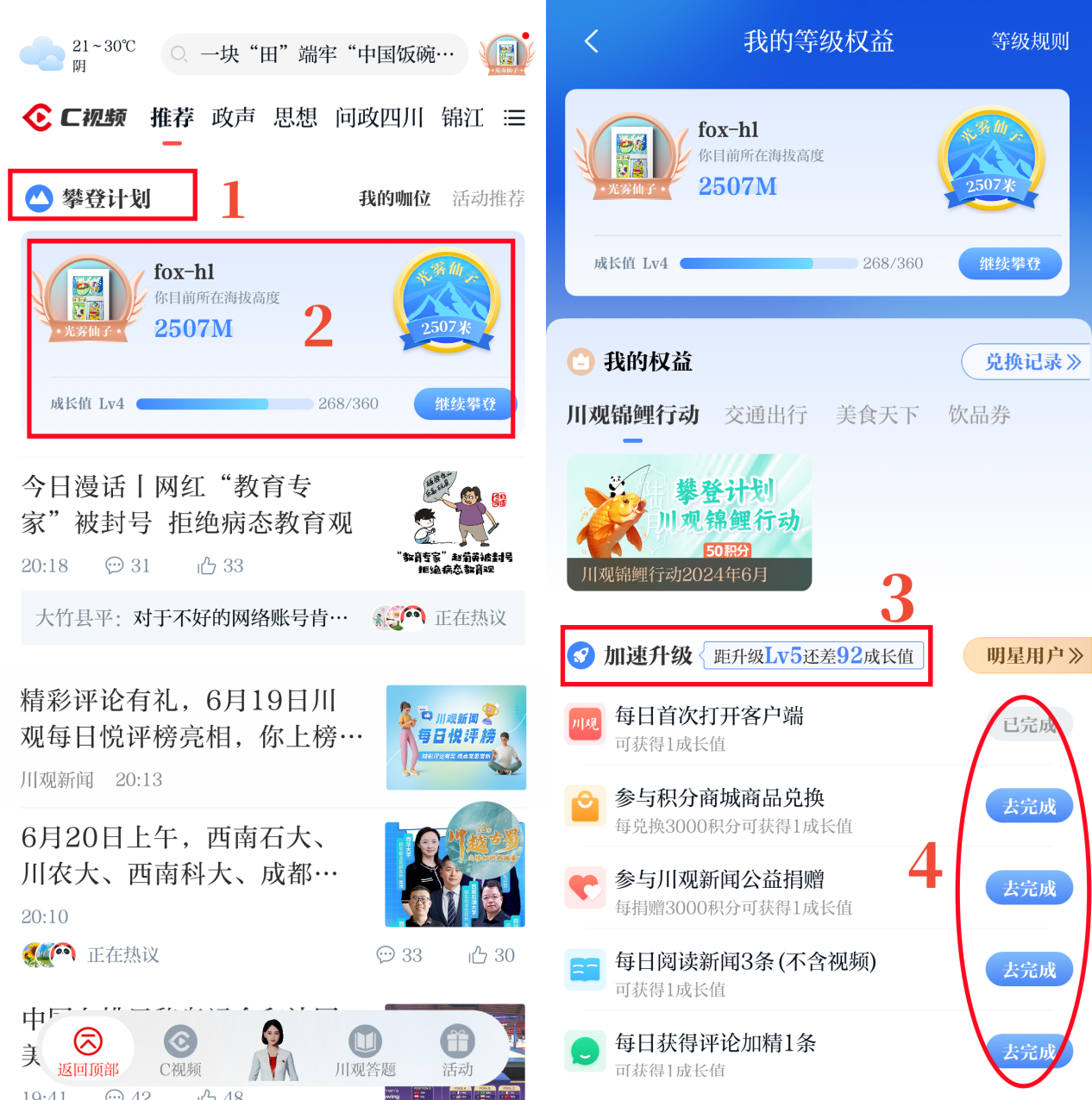第一步:在川观新闻客户端首页找到“攀登计划”活动页面;