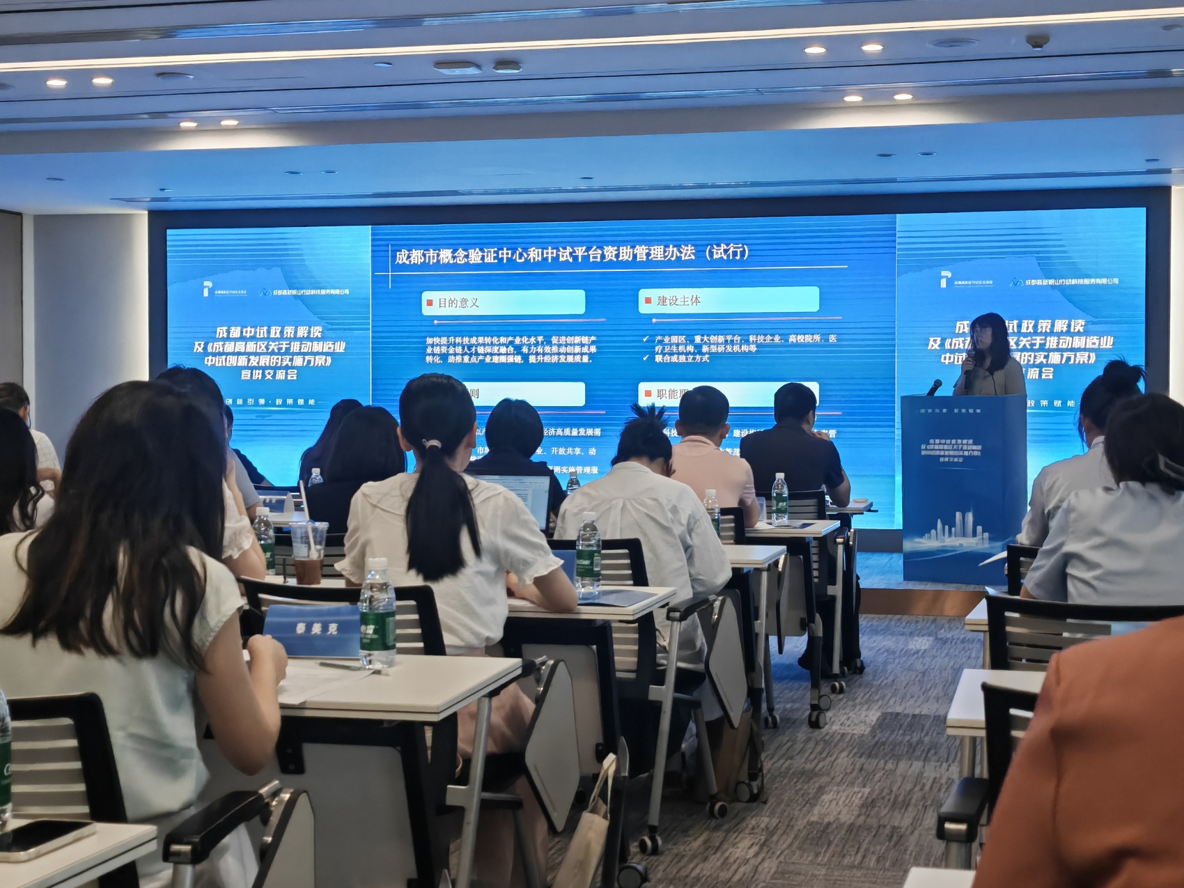 宣讲会上,成都市生产力促进中心的工作人员对《成都市概念验证中心和中试平台资助管理办法(试行)》进行了深入解读,为与会人员提供了政策建议。同时,成都高新区科技创新局相关工作人员也详细介绍了《成都高新区关于推动制造业中试创新发展的实施方案》,为未来中试平台的发展规划了具体路径。