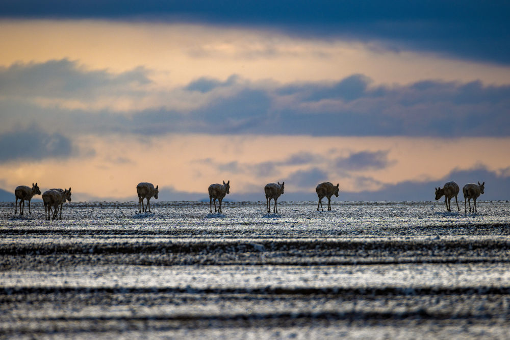 迁徙上千公里,鲁确塘一带聚集了上千只待产和已产的母藏羚羊;而同在羌塘国家级自然保护区境内的尼玛县色吾雪山、甜水湾一带,数十万只母藏羚羊在此产羔——这里已成为我国最大的藏羚羊产房。