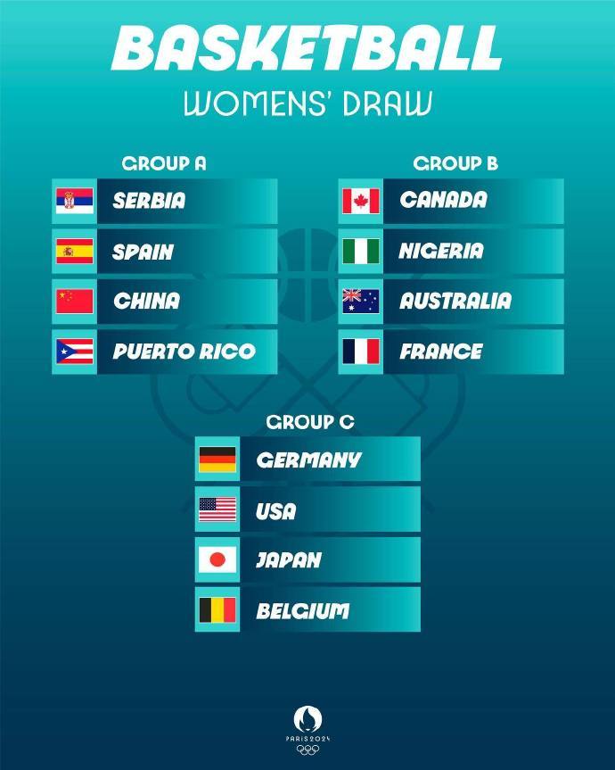 巴黎奥运会女篮比赛分组情况。来自巴黎奥运会官网