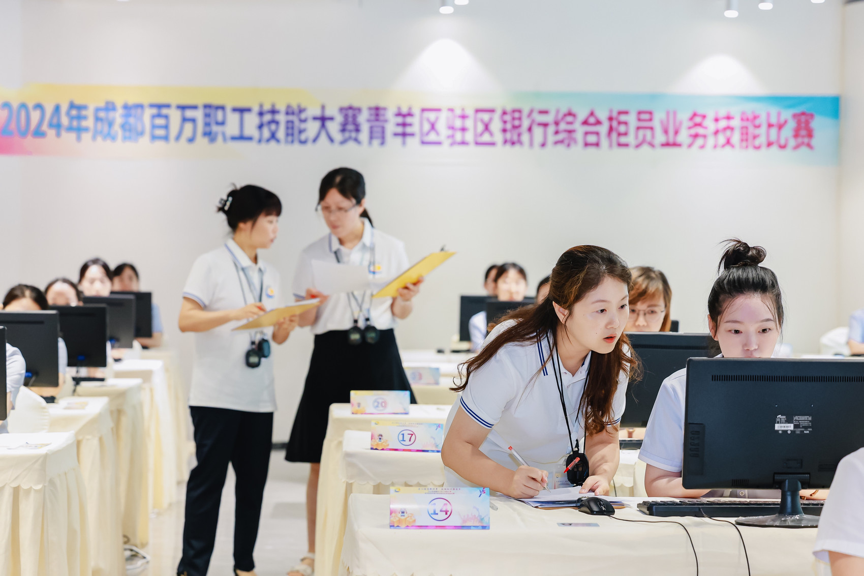 6月21日,在成都市青羊区数字金融大厦举办的2024年成都百万职工技能大赛青羊区驻区银行综合柜员业务技能比赛圆满落下帷幕。比赛由成都市总工会指导,成都市青羊区总工会、成都市青羊区财政局主办,青羊区光华街道总工会、中国邮政集团有限公司成都市青羊区分公司承办。