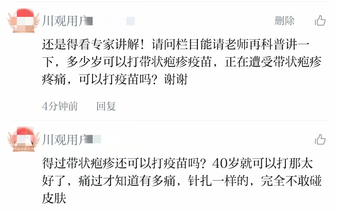 川观新闻C视频《医本正经》健康科普栏目,上期给大家科普了带状疱疹相关知识。(点击查看>剧痛!知名歌手自曝患病!医生提醒:会传染,治疗做好这4点)不少用户在评论区留言,咨询带状疱疹预防,特别是带状疱疹疫苗相关问题。