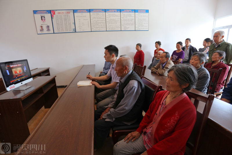 兴文县僰王山镇永寿村干部群众收看党代会开幕大会。申勇 摄