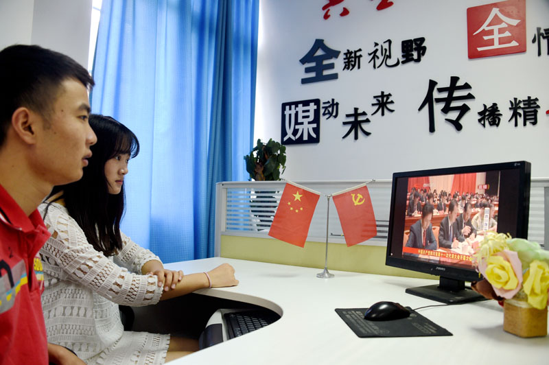 西南石油大学师生通过电视、网络等多种形式,收看党代会开幕大会。曹正 摄