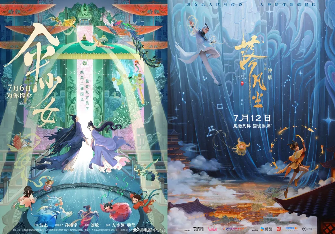 “电影宇宙”的打造也成为国产动画电影的热门趋势。“电影宇宙”指的是一系列电影作品,它们共享同一个世界观,有着相互联系的故事线和角色。在“电影宇宙”的延续上,《白蛇:浮生》定档 8 月 10 日,为了抢占暑期档前半段的票房并积累热度,“白蛇”系列第一部《白蛇:缘起》6 月 29 日重映打前站。在新“电影宇宙”的开辟上,猫眼电影为主出品方的《伞少女》力图打造一个“物拟人”古风宇宙的奇幻故事。