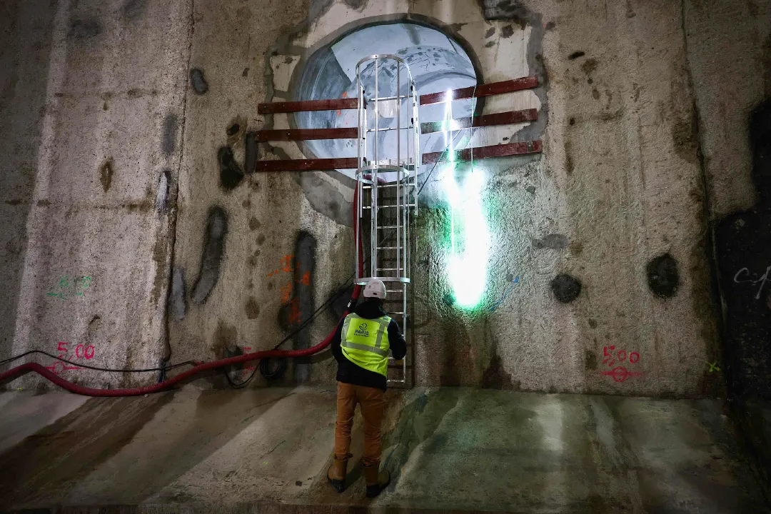 当地时间2024年3月13日,法国巴黎,建造中的巨型地。图片来源:澎湃新闻