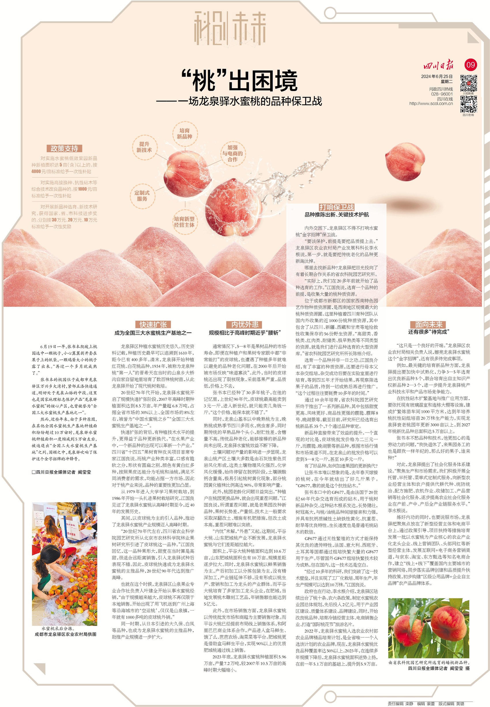 作为“中国水蜜桃之乡”,龙泉驿水蜜桃种植史可追溯到明朝,2007年高峰时年产量超6.8万吨,被誉为“全国三大水蜜桃生产基地之一” 。但近些年因多种原因,当地水蜜桃种植面积缩减,被迫退出“全国三大水蜜桃生产基地”之列。为此,龙泉驿打响了水蜜桃品种保卫战。淘汰老化品种,选育新品,培育冷链经营主体,具体怎么做,看今日九版。