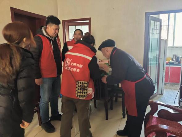微网格员和志愿者上门为老人服务。