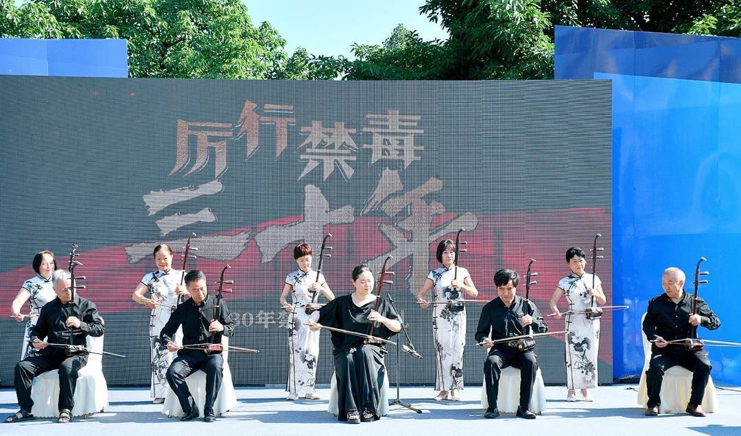 在文艺表演环节,二胡演奏《战马奔腾》、歌曲《只要平凡》《沉沦与新生》、萨克斯演奏《画你》等精彩节目轮番上演,赢得了现场观众的阵阵掌声。此外,活动现场还举办了禁毒书画展和新时代禁毒工作成效展,展示了华阳街道在禁毒工作方面的创新成果和成效。