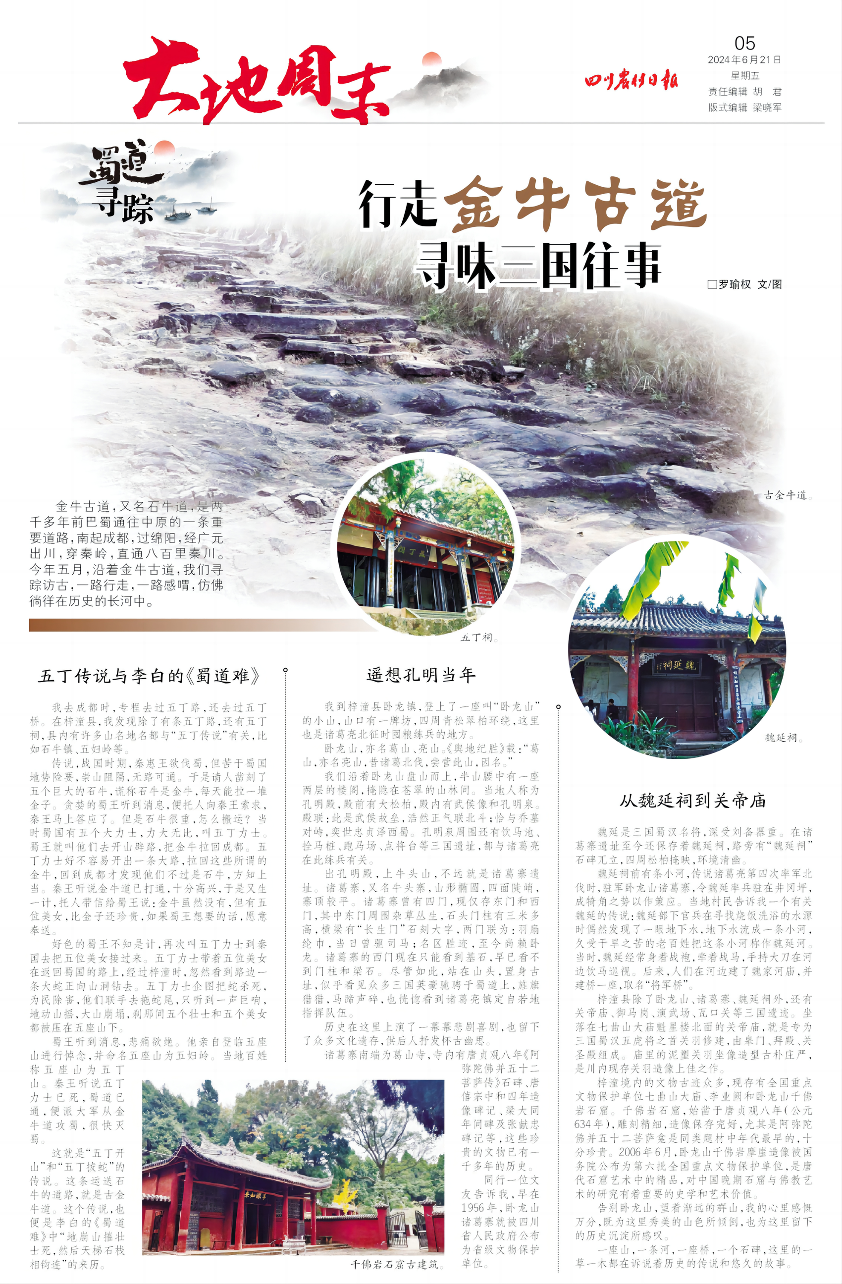 我去成都时,专程去过五丁路,还去过五丁桥。在梓潼县,我发现除了有条五丁路,还有五丁祠,县内有许多山名地名都与“五丁传说”有关,比如石牛镇、五妇岭等。