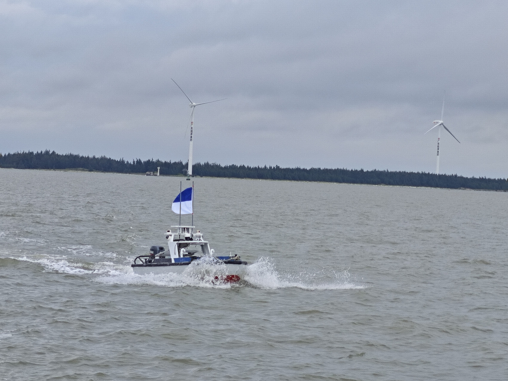 “问江”型无人船在广东湛江海域开展测绘测试。(长江泸州航道局供图)