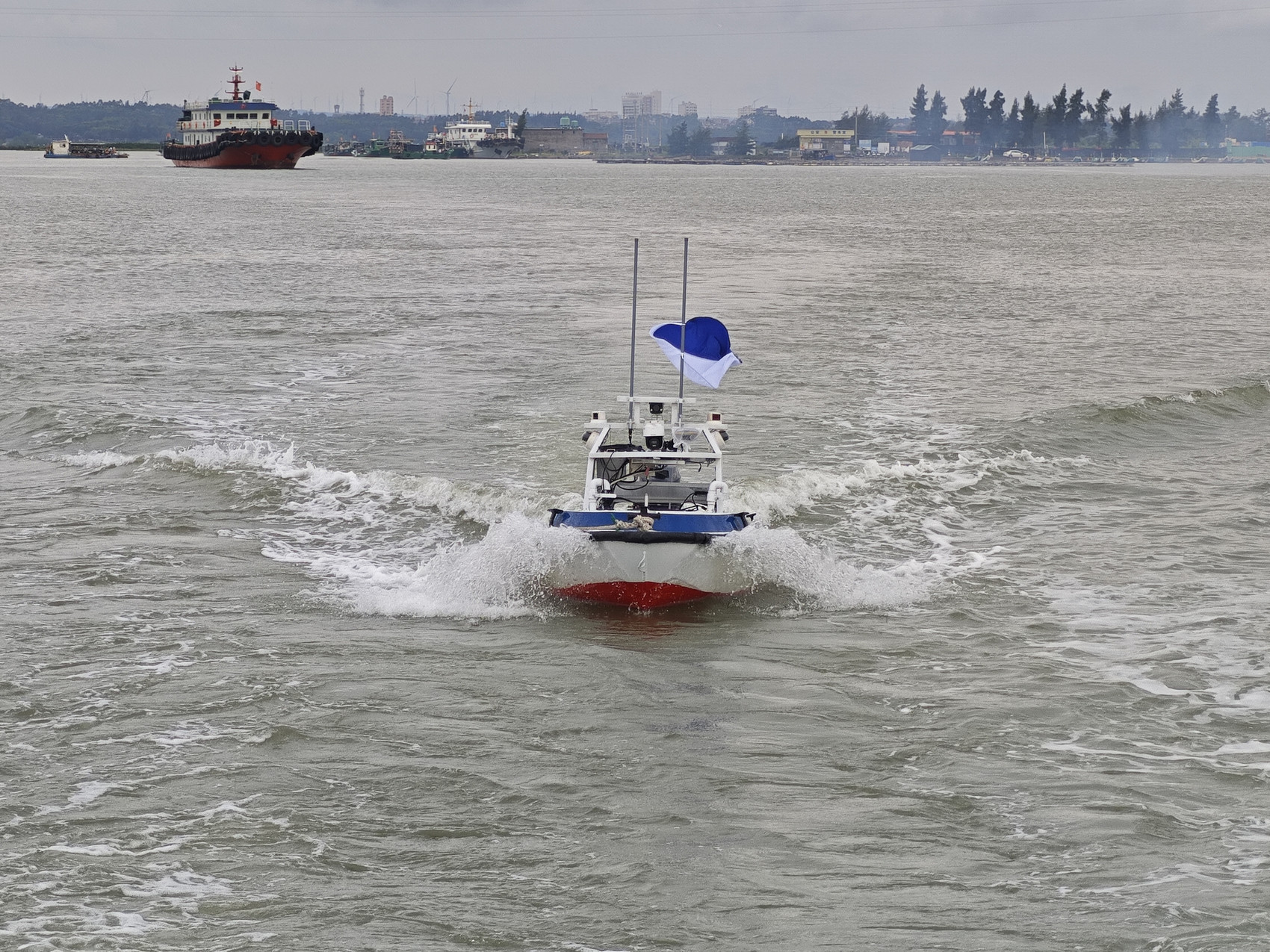 “我们根据远海特点,对无人船进行改装升级,首次进入海洋开展测绘测试应用。”长江泸州航道局副局长杨传华说,目的在于充分验证“问江”型无人船的稳定性、抗风浪性、抗腐蚀性及续航保障能力。