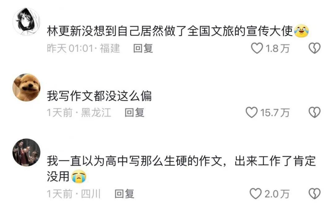 网友表示:“林更新马上成全国文旅宣传大使了。”