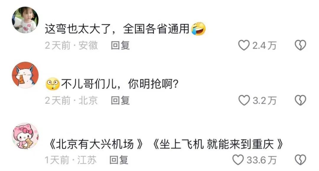 之后,各地文旅也是纷纷接招,新疆、贵州、海南、成都、焦作、湖北、山东等地开启二次创作,主打一个没场硬转。