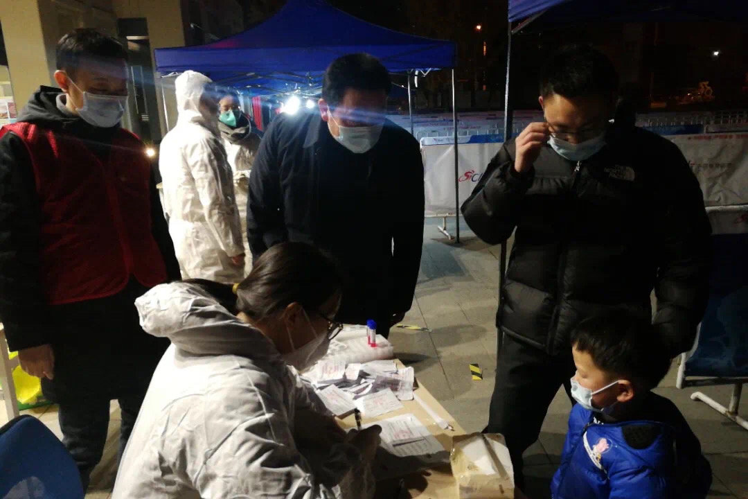 “小朋友,不要紧张,我们是男子汉,让棉签探进去,很快就结束了。”12月9日晚,寒气笼罩下的郫筒街道书院社区,成都市郫都生态环境局工作人员守候在核酸检测点旁,细心抚慰参加检测的小男孩,鼓励他勇敢接受检测。