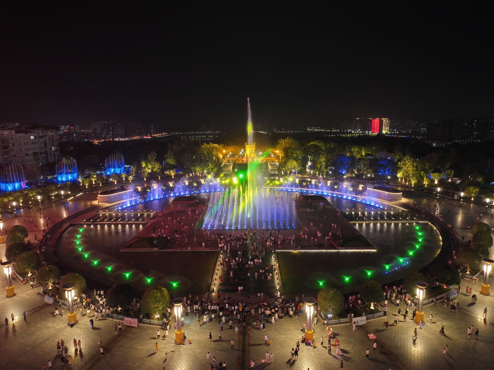 此外,广场上的涌泉和跌泉也为表演增添了不少色彩。涌泉位于广场中央水池四周,每天上午7:00至7:30、9:00至9:30,下午17:00至17:30,晚上19:00至22:00开放;而跌泉则位于“实事求是”鼎下方,每天上午8:00至12:00,下午14:00至18:00,晚上19:00至22:00开放。这些喷泉与音乐、水幕电影相互呼应,将丰富市民的视听体验。