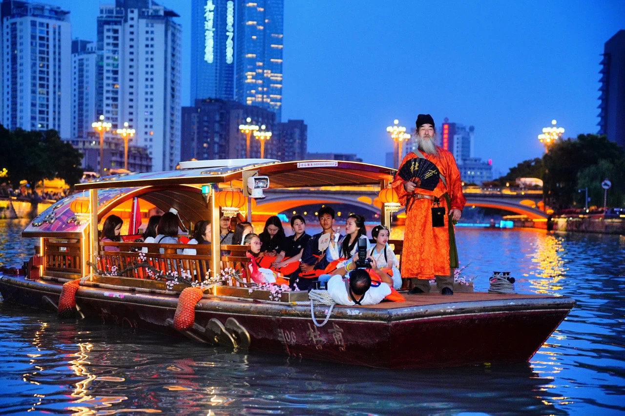从东门码头出发,一路经过合江亭、安顺廊桥、九眼桥……童心乐游蓉城夜,诗意锦江幸福浓。这是由成都市民政局主办的“童心乐游· 诗意锦江”困境儿童夜游锦江主题活动,活动中,游船变成移动的趣味舞台,孩子们开启诗词吟对大比拼,欢笑热闹间,共赴一场文化盛宴。